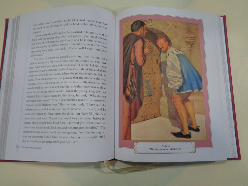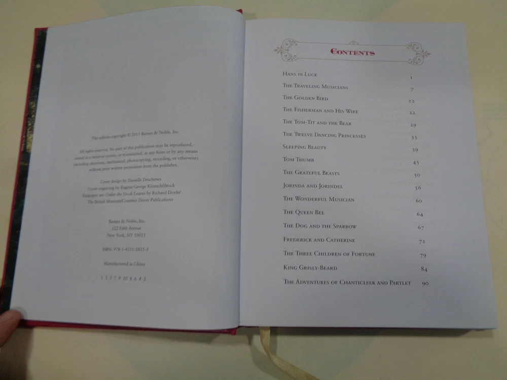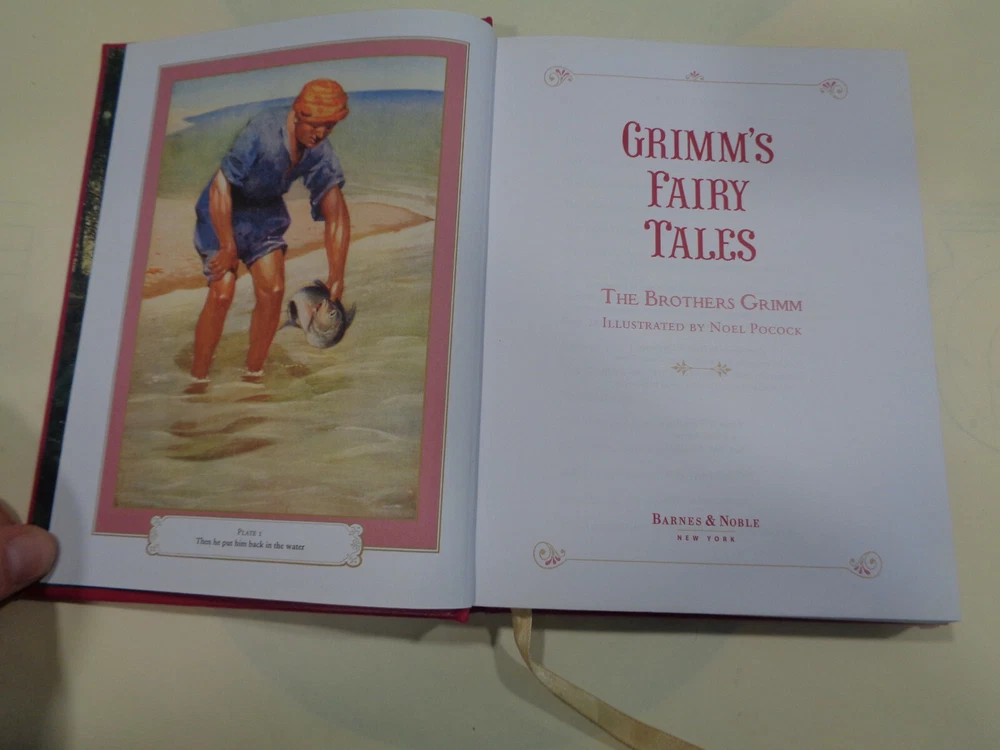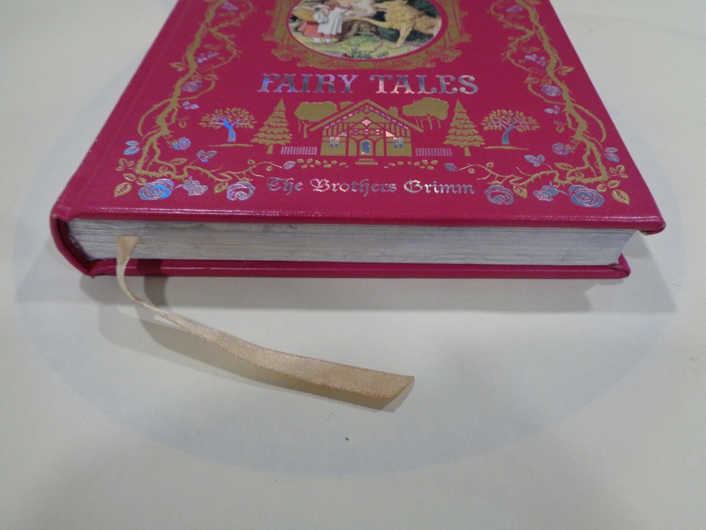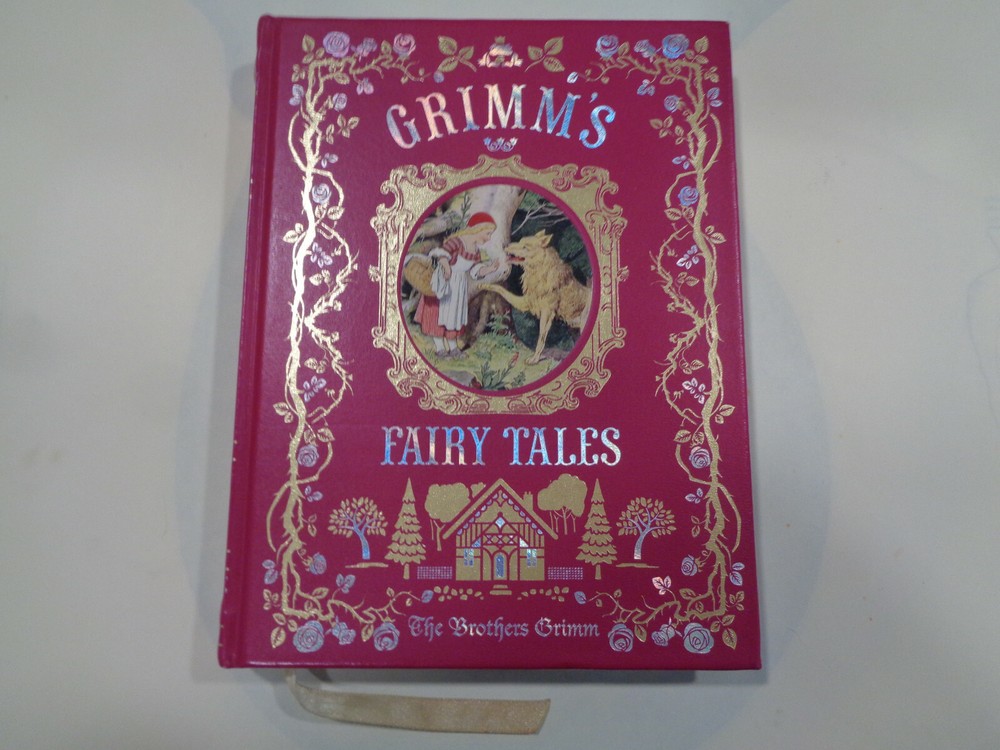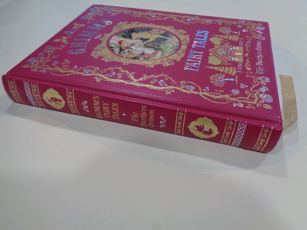 Grimm’s Fairy Tales 2015 The Brothers Grimm Leather Bound Collectible Grimm’s Fairy Tales by The Brothers Grimm The book features a unique look at the great classic tale. Publisher: Barnes & Noble Collectible Editions The book measures approx. 8 by 6 inches. The covers are very nice with some gentle wear and rubbing. The spine end has some light wear on the ends. The boards and corners are in nice shape with some very slight denting and wear. The hinges and binding are tight and strong. The pages are bright and clean, some very light wear along outside page edges, book is very nice and looks unread. Shipping weight is 4 pounds Inventory: 0521AD108