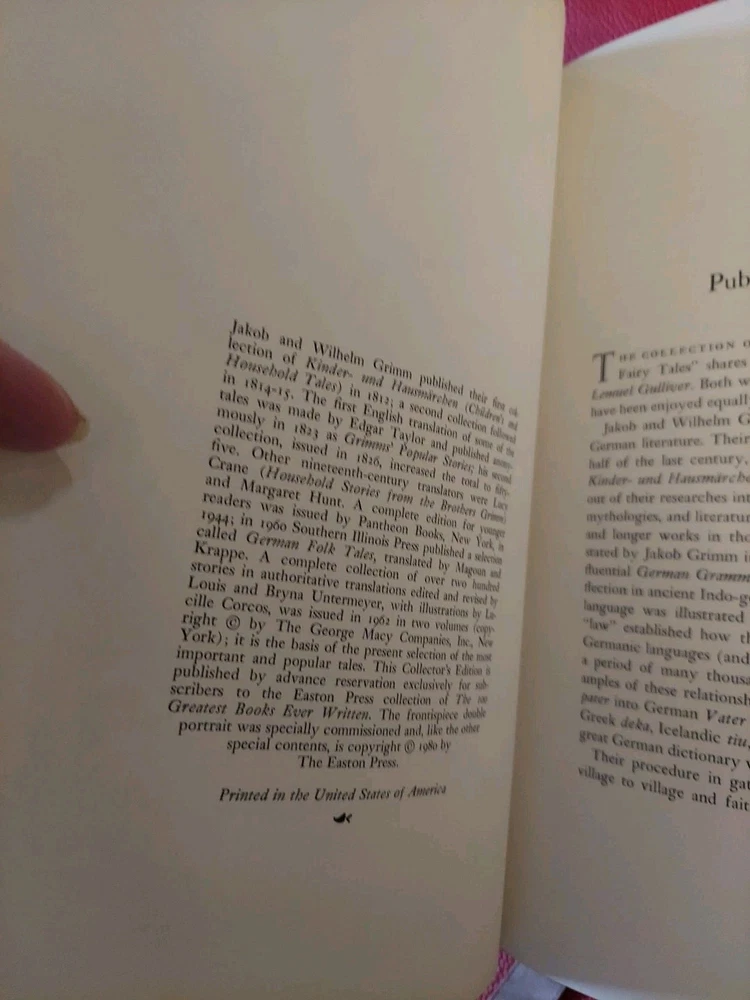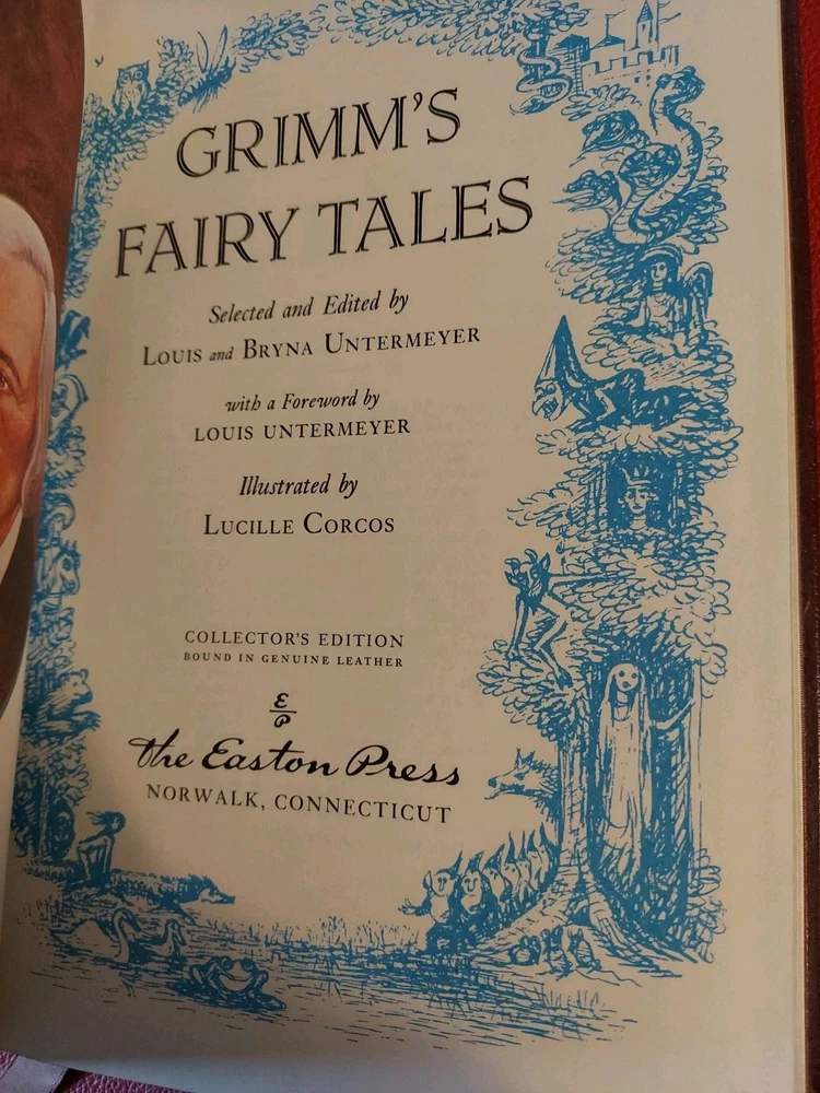 The product is a special edition of "Grimm's Fairy Tales" by Louis Untermeyer, illustrated by Lucille Corcos. Published by Easton Press in 1980, this hardcover book is part of a series and is vintage in nature. It features leather-bound cover, and measures 7.5 inches in length, 10.25 inches in height, and 1.25 inches in width. With 330 pages, this classic literature book is intended for young adults and adults, making it a collector's item for fans of fairy tales and literary collections. Binding unbroken. No International or Alaskan sales