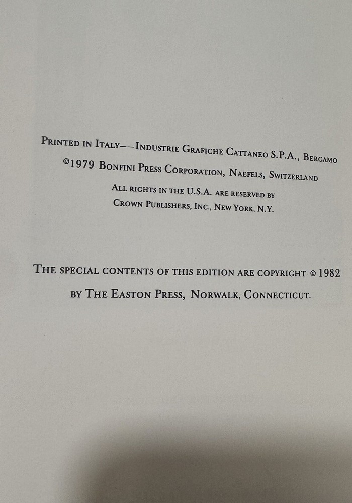 Henri Rousseau by Dora Vallier Biography and art of the famous post-impressionist avant-garde French painter. Full-color plates of the art. Published in a beautiful fine binding: Accented in 22kt gold, printed on archival acid-free paper with gilded edges, custom patterned endpapers, satin ribbon place holder, Smyth sewing & concealed muslin joints. Bound In full leather with hubbed spines. Oversized, quarto: 12.25” x 9”. Illustrated throughout. Published in 1982. First edition thus. An Easton Press 1st edition/1st printing. Condition: NEAR MINT (FINE). Minimum shelf wear and rubbing. Just a bit of dust soiling in spots (given all black boards). INTERIOR AS NEW. No former owner bookplates, no foxing, no writing. ***A spectacular copy of this special deluxe edition in FINE condition!*** Please view pictures to appreciate the craftsmanship and condition. Henri Julien Félix Rousseau (May 1844 – September 1910) was a French post-impressionist painter in the Naïve or Primitive manner. He was also known as Le Douanier (the customs officer), a humorous description of his occupation as a toll and tax collector. He started painting seriously in his early forties; by age 49, he retired from his job to work on his art full-time. Ridiculed during his lifetime by critics, he came to be recognized as a self-taught genius whose works are of high artistic quality. Rousseau's work exerted an extensive influence on several generations of avant-garde artists. As a fellow book collector, I know how frustrating it can be when items aren’t accurately described or poorly packaged for shipping. That is why I (1) take a lot of pictures and try to describe condition issues as accurately as possible and (2) pack your book purchases with the utmost care before shipping. I have been selling and buying on eBay for over 10 years and have a 100% satisfaction rating, and offer a 100% satisfaction guarantee 30-day return policy. Happy to combine shipping on multiple orders to save you money. Please follow me as I have dozens of signed Easton Press books and thousands of other collectible books to list in the coming weeks and months!