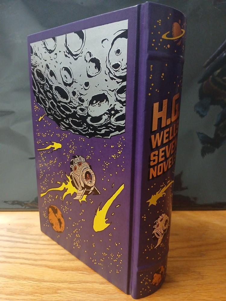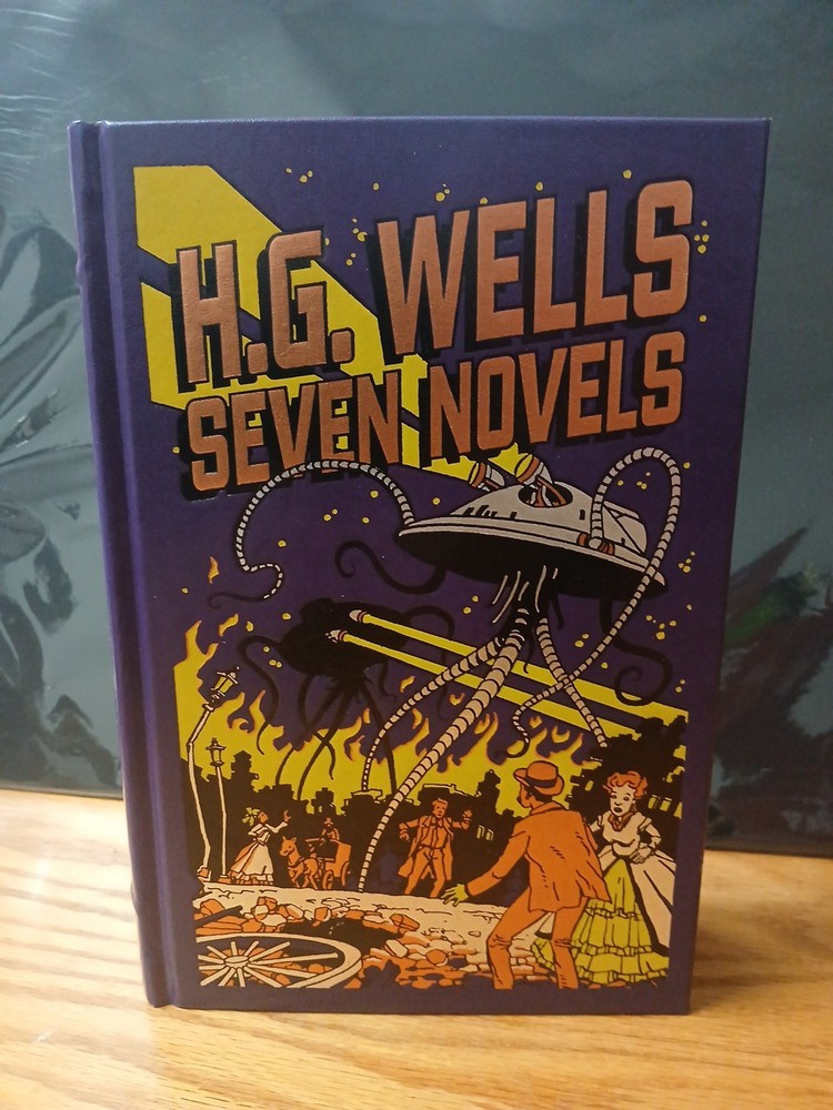This collector's edition book features the seven novels of H.G. Wells, bound in leather. The books are a mix of science fiction and fiction, with a narrative type of fiction. The intended audience is young adults and adults, with an original language of English. The book was published in 2009 by Barnes & Noble, Incorporated, and is part of the Seven Novels book series. The book is not signed or personalized, and does not have an ex libris or inscription. It is a vintage item, but not necessarily a valuable one. The book is perfect for fans of science fiction and collectors of H.G. Wells' works.