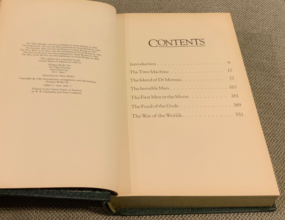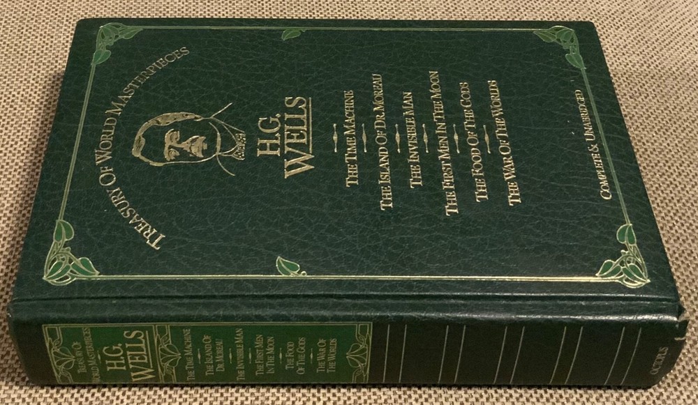You are bidding on a H.G. Wells - 6 World Masterpieces Unabridged - Gold Leaf Pages - Octopus Books. This book includes The Time Machine, The Island of Dr. Moreau, The invisible Man, The First Men in the Moon, The Food of the Gods, and The World of the Worlds. Shipping will be 5.95. I only ship to the continental United States.