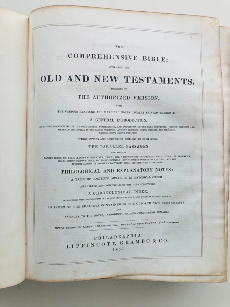 Please check out this awesome 19th Century 1855 leather bound Large Illustrative , HOLY BIBLE 1855 Comprehensive & Illustrative History Of The New & Old Testament . This rare Bible measures, 12” High x 10” Wide x 4” Deep, Wt, 11 lbs The front binding cover is loose. The back binding is missing from the book. I’m not sure if all of the pages are present on the missing side. The pages are showing no rips or tears , there is visible staining on some pages . There is some pen and pencil writing notations throughout . There are 21 engravings. ( See Photos ) DON'T MISS OUT ON TH IS BEAUTIFUL VINTAGE COLLECTIBLE ! SMALL ITEMS ( UNDER 25" ) WILL SHIP IN 3-5 DAYS Please view all the pictures as they are part of the description , email if you have questions . ALL of my items are guaranteed to be authentic. We do not ship to PO boxes INTERNATIONAL BIDDERS Paypal only , No shipments to "unconfirmed address" We cannot claim a lower value on shipping documents We are not responsible for any extra customs fees you may incur for importing the item to your country Any delays caused by international shipping are out of out control Only bid if you agree to these terms.