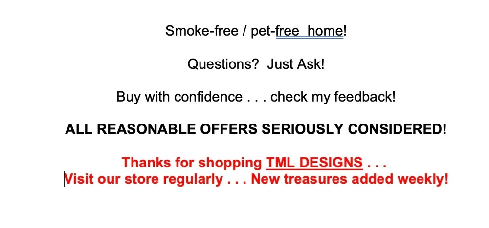 Thank you for the tender loving care of your packaging. This is the most darling. It’s little pattern. I’m giving you 100% positive because of the packaging the on time delivery and y. I really appreciate this seller honesty 100% really 100% five star buyer