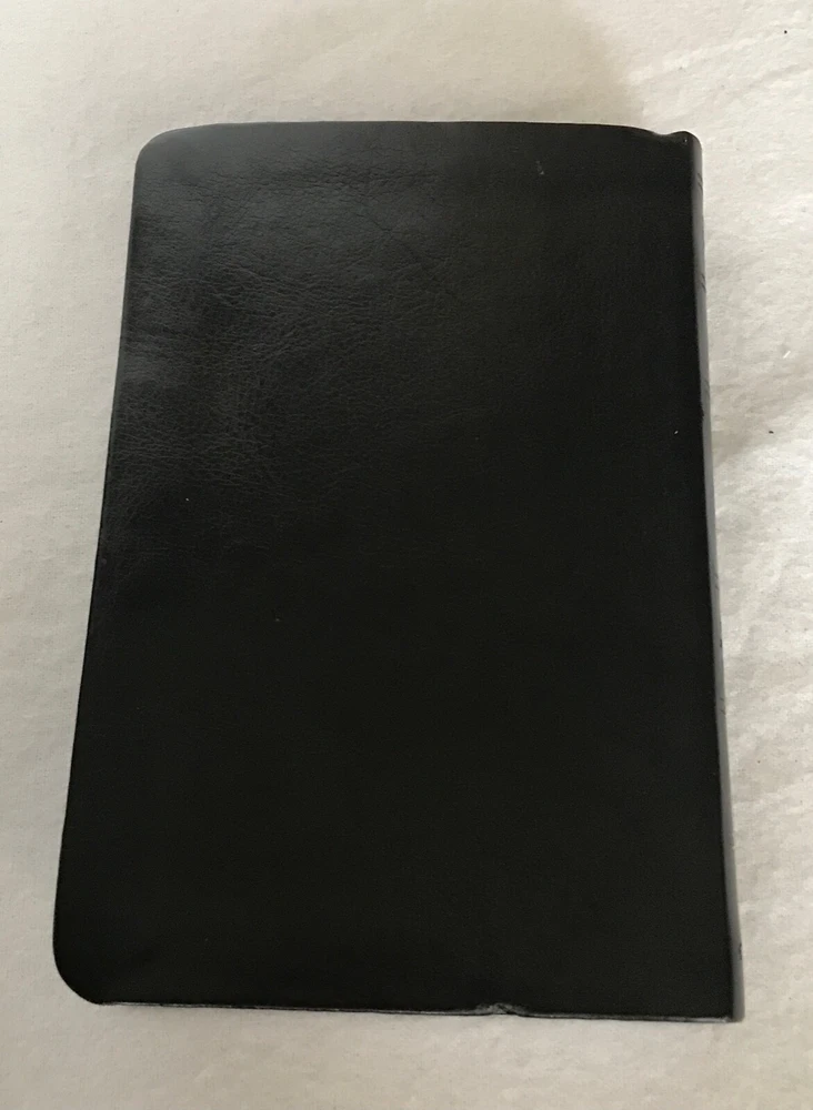 THE HOLY BIBLE Black Leather Cover / Back Soft Glove Leather Contains Old & New Testament Celtic Cross Embossed on Front Cover Gift-Giving Condition Perfect Personal Size Bible to Keep With You at all Times! 4"w X 6"h