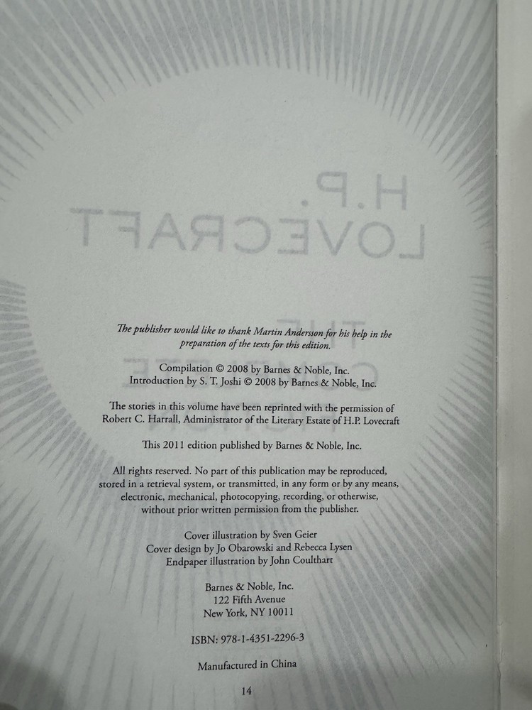 | Book Title | H.P. Lovecraft: The Complete Fiction |