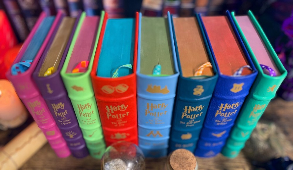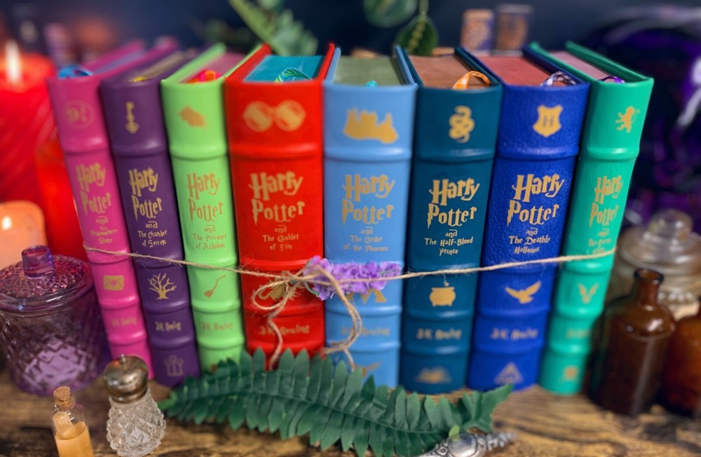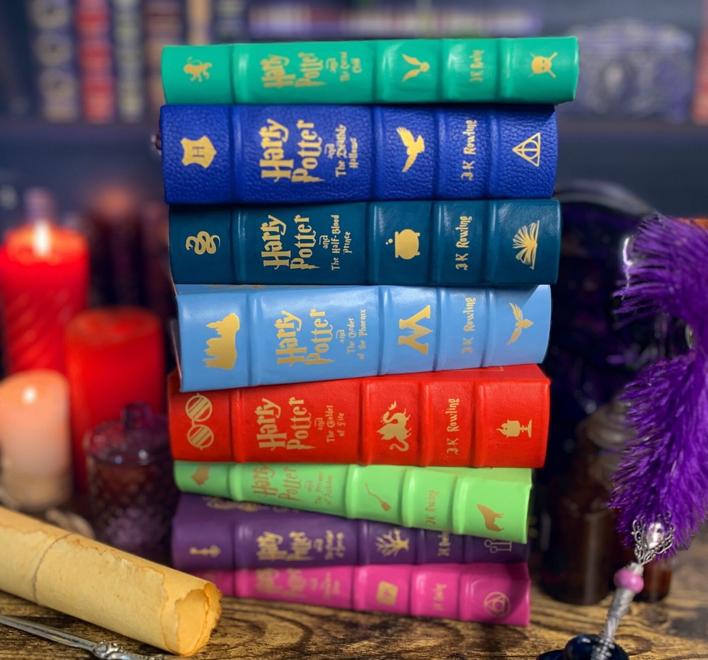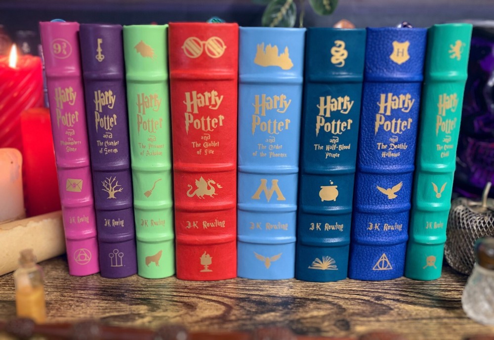 The Harry Potter book set comes with the seven original books; (Harry Potter and the Sorcerer's Stone, Harry Potter and the Chamber of Secrets, Harry Potter and the Prisoner of Azkaban, Harry Potter and the Goblet of Fire, Harry Potter and the Order of the Phoenix, Harry Potter and the Half Blood Prince and Harry Potter and the Deathly Hallows) plus the unofficial eighth book in the series Harry Potter and the Cursed Child. Each Book is bound in Goatskin Leather using Traditional PH Neutral Glue and Wheat Paste. Each Book has custom end papers and all the books have custom head and tail bands, and custom place keeper ribbons. The edges of the books are gilded. The books are bound to order and will take some time to complete each set. This is the set I made for my wife. There will be a two week (14 day) turnaround for all custom binding book sets. I will send continuous updates as I make progress on the books. All books will be sent Priority Service and Insured. If you have any questions please feel free to reach out to me.