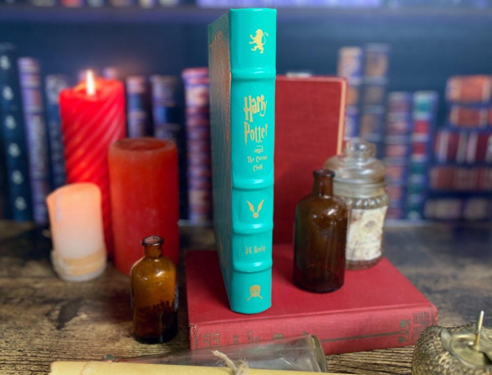 Harry Potter and the Cursed Child. Each Book is bound in Goatskin Leather using Traditional PH Neutral Glue and Wheat Paste. Each Book has custom end papers and all the books have custom head and tail bands, and custom place keeper ribbons. The edges of the books are gilded. The books are bound to order and will take some time to complete each set. This is the set I made for my wife. There will be a two week (14 day) turnaround for all custom binding book sets. I will send continuous updates as I make progress on the books. All books will be sent Priority Service and Insured. If you have any questions please feel free to reach out to me.