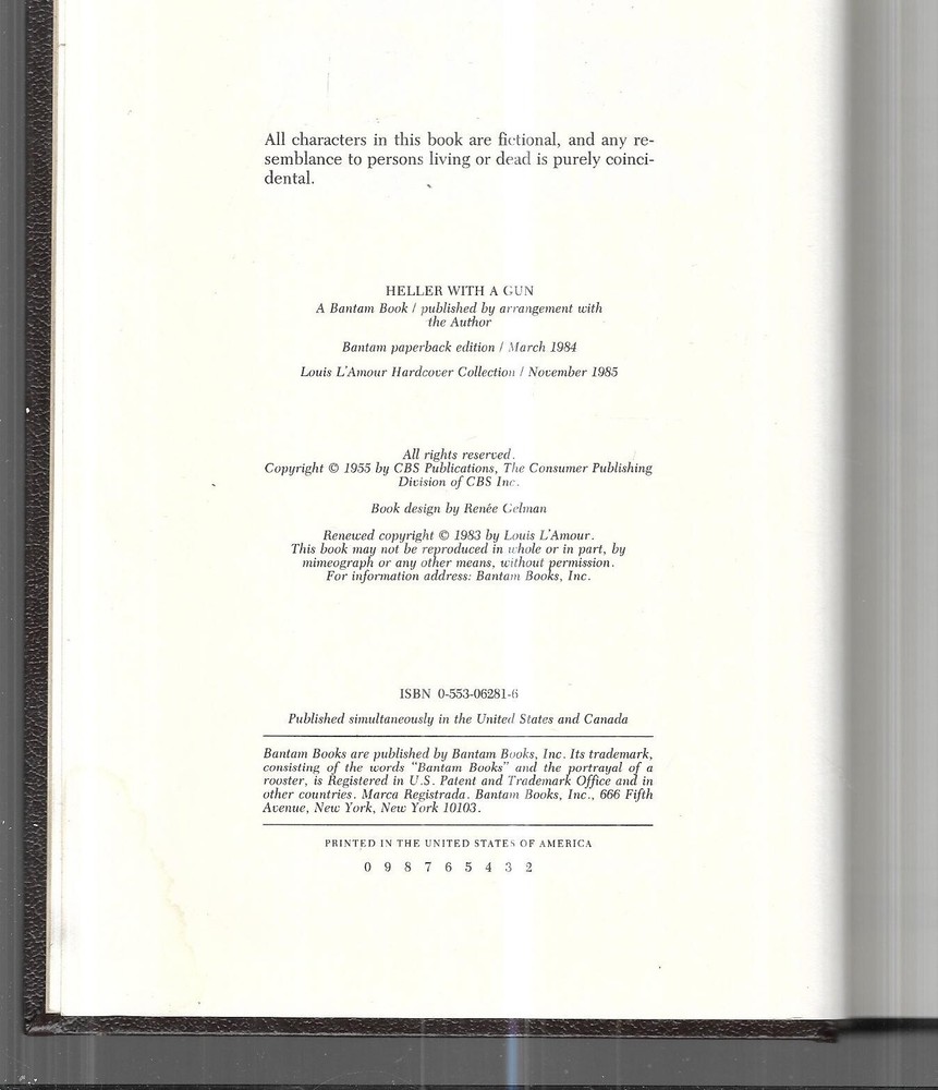 It was a hard land that bred hard men to hard ways. King Mabry survived by his guns. He wasn't proud of his deadly skill, nor was he ashamed. He just lived with it every hard day on the frontier. When a traveling theatrical troupe hired a ruthless killer to guide them through the Wyoming wilderness, King Mabry--his guns at the ready-set out to follow their trail, and not blizzards, nor Indians, nor the wily guide would stop him. This collectible hardcover book, titled "Heller With a Gun" and authored by Louis L'Amour, is a must-have for any L'Amour enthusiast. The book was published in 1985 and is written in English. It is a part of the Louis L'Amour Collection. Very good, low wear leatherette collection hardcover, clean and unmarked. 151 pages with sand-colored endpapeers and about 1 by 6 by 9 inches. BANTAM