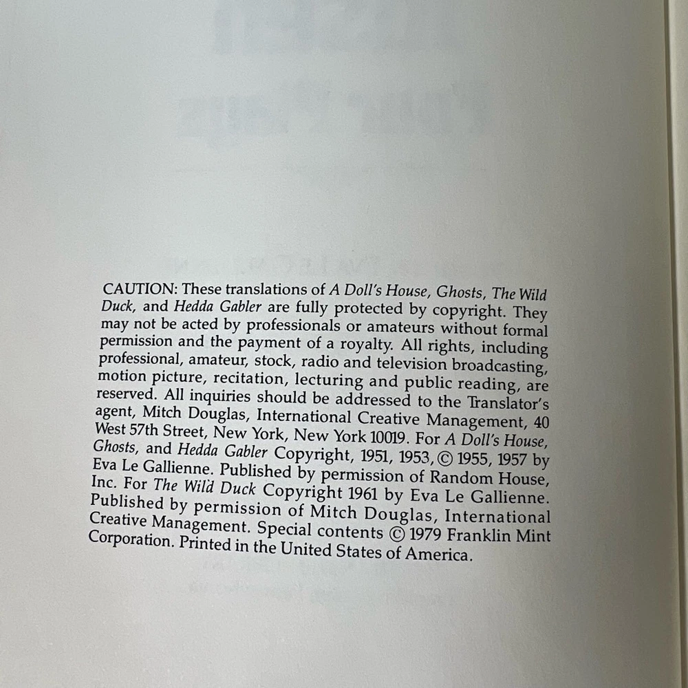 Henrik Ibsen Four Plays Hardcover Book The Franklin Library 1979 Translated Author: Henrik Ibsen Book Title: Four Plays Language: English Format: Hardcover Book Publisher: The Franklin Library Publication Year: 1979 Features: Faux Leather Bound Sold as pictured. Thanks for looking! Please Review Photos as part of the Item Description and Full Details We Attempt to Provide As Detailed Pictures As Possible We Welcome all questions regarding the item, Shipping or Feedback We Ship Our Orders Same or Next Business Day to Provide the Fastest Possible Shipping Time Review our Feedback Buy With Confidence Thank You For Looking This listing was easily created using the SellHound Posting App!