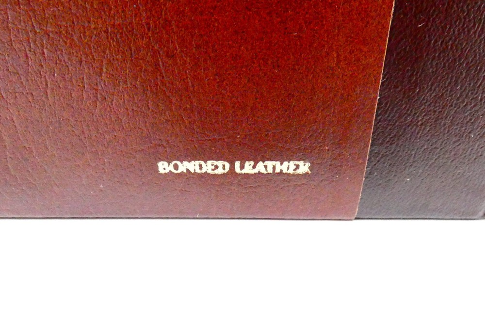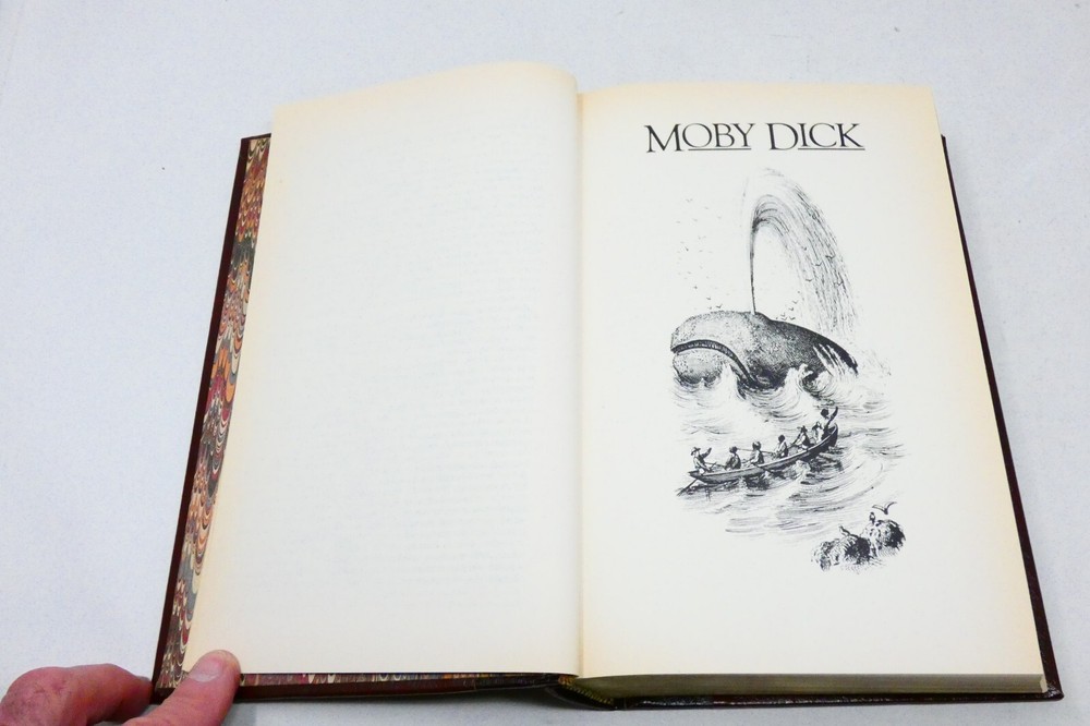 Herman Melville 4 Novels: Moby Dick Billy Budd The Confidence-Man The Piazza Tales Bonded Leather Collection ~ Peerage Books Dimensions: 9 1/2 by 6 1/2 by 2 inches Very Good Preowned Condition: The book is free of writing and shows no real signs of being read. The pages are clean but are yellowed just a bit. I'm not sure if this is how they were originally, or if they have aged a little. The corners have the tiniest of marks.