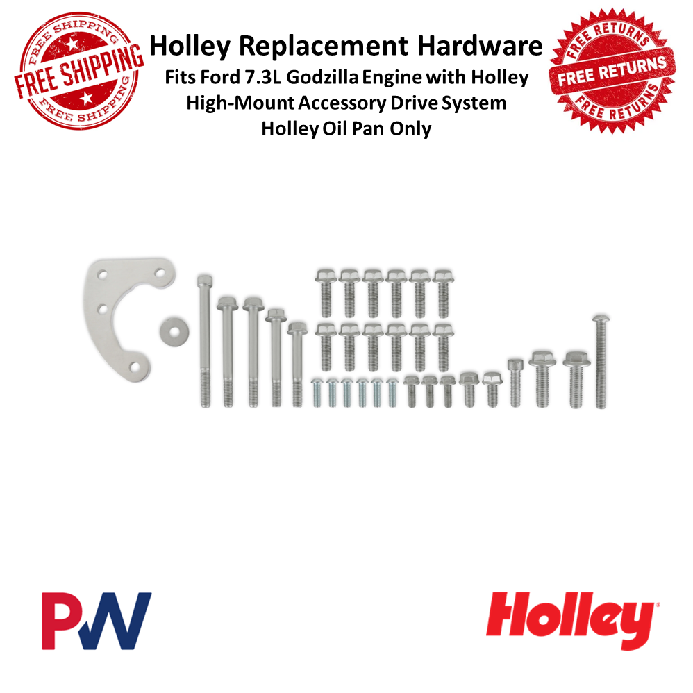 Fast & Free Shipping Fair Price Best Offer Guaranteed High Performance Hassle Free Returns Personalized Customer Service About Us Home Feedback Contact HOLLEY Holley Replacement Hardware Kit Cadmium Finish, Steel For Ford 7.3L Godzilla # 97-408 BRAND NEW IN BOX Holley's high-mount accessory drive has everything pulled up and in tighter than other options. The patent pending accessory drive incorporates the timing cover, water pump, and alternator and can also be configured with A/C and/or P/S if desired. This system works with the factory crank pulley, as well as aftermarket damper/pulleys. The accessory drive components in this system can be configured in several different ways. For example, there are alternator options available for different performance and electrical demands. Also, deleting the A/C and/or P/S are options if configured as a custom modular setup. The "base kits" supply all but the components with options. If you purchased a "Holley complete kit," all these options are already chosen for the most common, cost-effective combination. This kit is a service part for part # 97-401 (natural) or 97-417 (black) If you are using an OE pan, see part # 97-411 for the timing cover hardware kit that matches Holley Timing Covers 97-410 (natural) and 97-418 (black). Features Easy Install Vehicle Fitments Ford 7.3L Godzilla Engine with Holley High-Mount Accessory Drive System - Holley Oil Pan Only Product Specs Application Ford 7.3L Godzilla Brand Holley Emission Code 5 Engine Ford 7.3L Godzilla Finish Cadmium Material Steel Product Type Hardware Kit UPC 090127136539 Part Number 97-408 CHECK OUR STORE For More Products SHIPPING PAYMENT We ship via UPS/USPS/FEDEX/ONTRAC ground depending on the address of buyer unless instructed to do differently We also offer expedited shipping at an extra cost . International shipping rate applies to addresses in all other locations Custom/duty/brokerage fees, if any, on Canada and international orders are the responsibility of the buyer. Item ships within one business day after the payment has cleared or same day if paid by 12pm PST unless additional handling stated. Item purchased is shipped from West or East Coast Warehouses of ours depending on availability. There's a shipping surcharge for shipments going to USPS PO Boxes, AF/APO boxes and any address that is out of 48 lower states. Please contact prior to get a shipping quote . We strive to ship your order in a prompt manner to meet the criteria for shipping time that we specify in the Item information. Ebay Promotional Shipping is only good for shipments going to 48 lower states only. We offer a variety of shipping options based on what product you are purchasing and your desired time frame for delivery to meet the needs of all of our customers. Shipping charges are non-refundable . We require that all payments be paid through PayPal . Your address must be confirmed. Buyers who pay with unconfirmed addresses will not be accepted. International Buyers , please contact us before bidding to discuss the shipping cost. We always look to satisfy our customers in whatever needs they may have . RETURNS Per our return policy this item can be returned in 60 days, buyer is responsible for the return shipping. Any product you return must be in the same condition you received it and in the original packaging. Please keep the receipt. International Buyers , please contact us before bidding to discuss the shipping cost. Performance your car deserves.