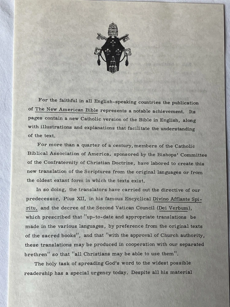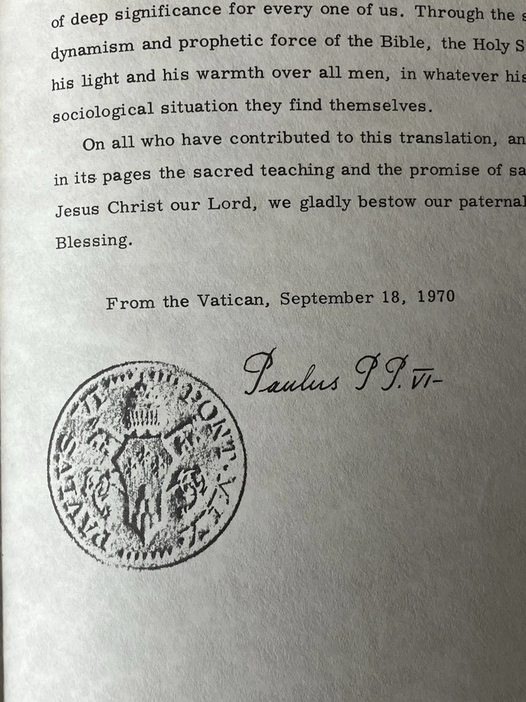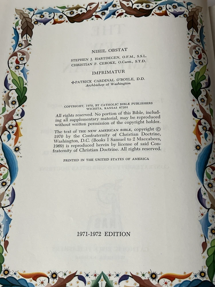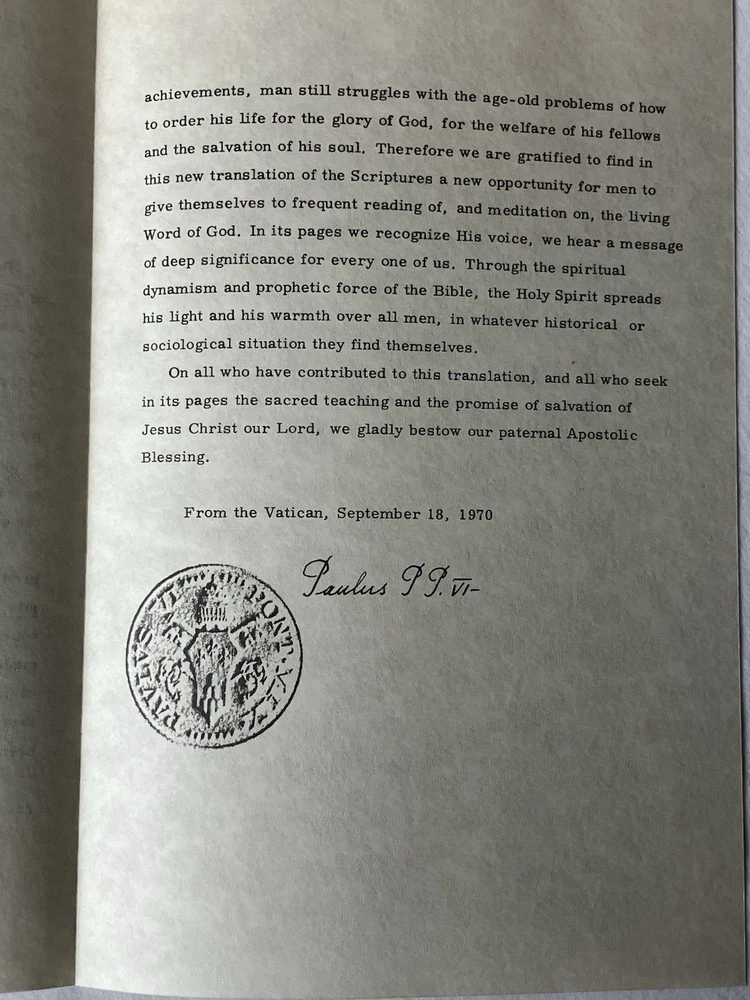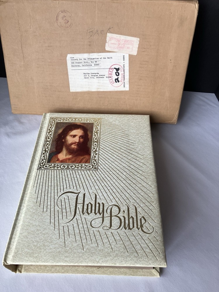 Magnificent! Comes in the original box with the rare Vatican letter dated September 28, 1970 Pope Paul VI. Please see all of the photos for the Bible that you will be purchasing. This pristine Bible does not appear to have had any use, other than the presenter’s writing on the first page. Disclaimer: Most items are from local estate sales and auctions around Colorado. All items I sell are being described to the best of my ability and with utmost conscientiousness on my part, but please know I am not an expert. To avoid any potential oversights, I respectfully request your assistance in thoroughly reviewing the description, & photos prior to Buying/Bidding. Any damage noted will be mentioned and included in photographs. **Shipping** In an effort to be more environmentally friendly, your package might include some recycled materials but this gives me more options to assure your items are safely packaged.