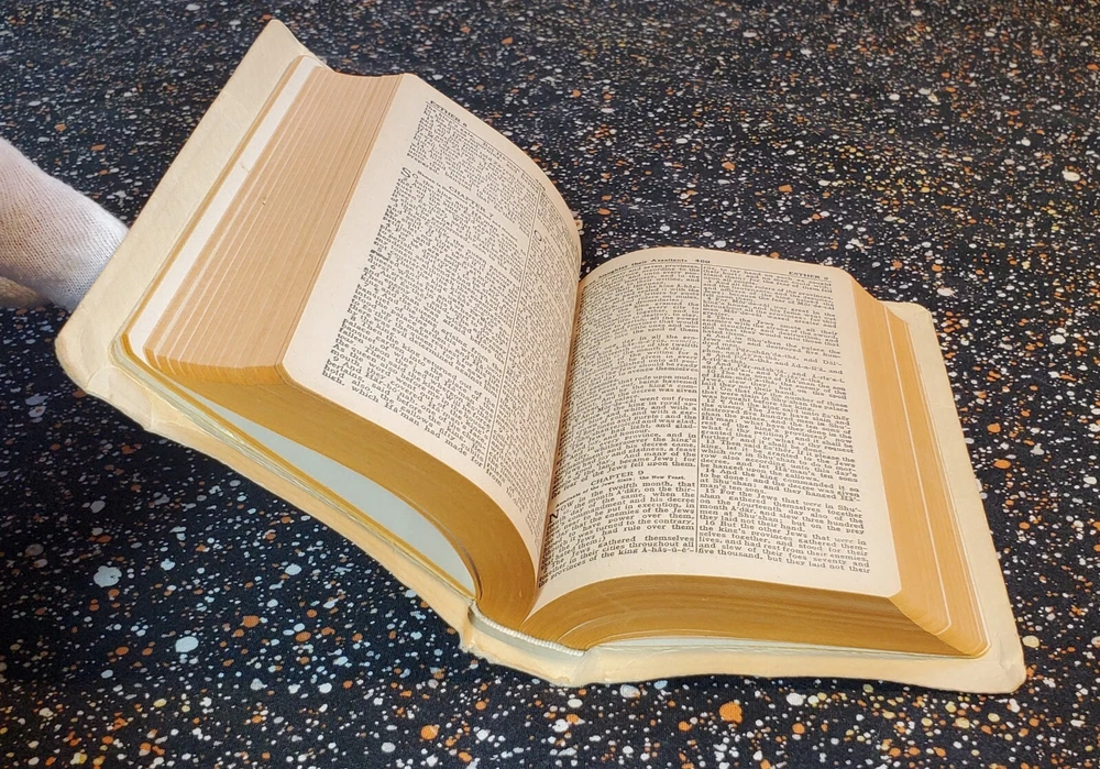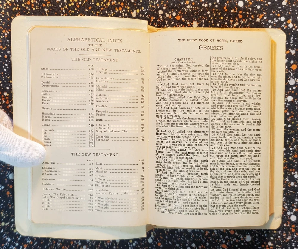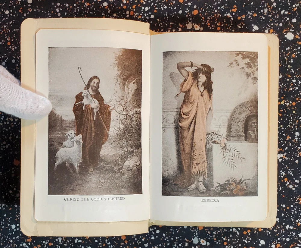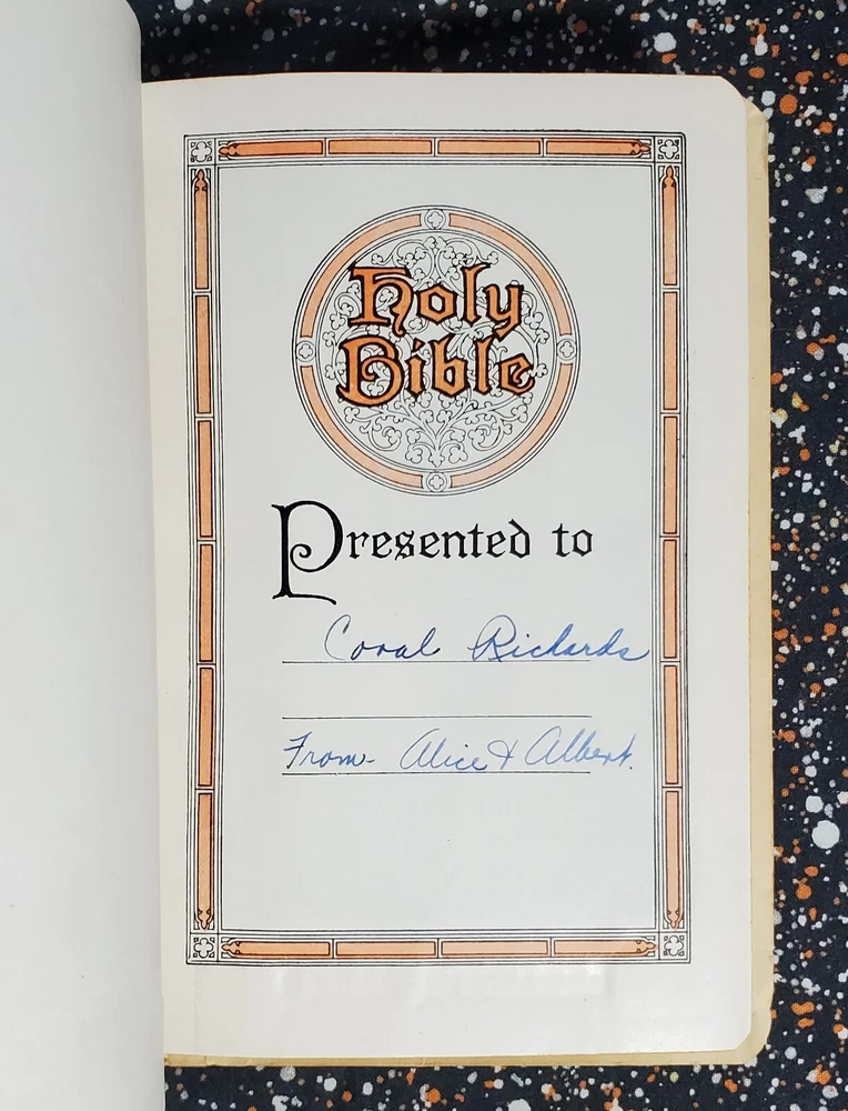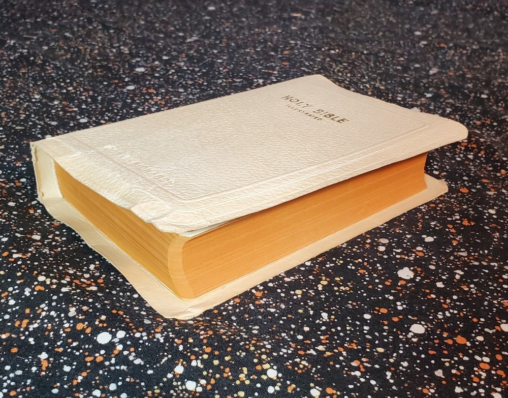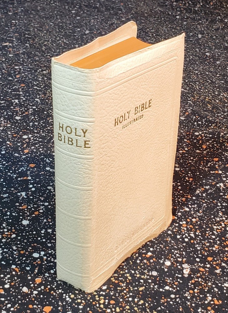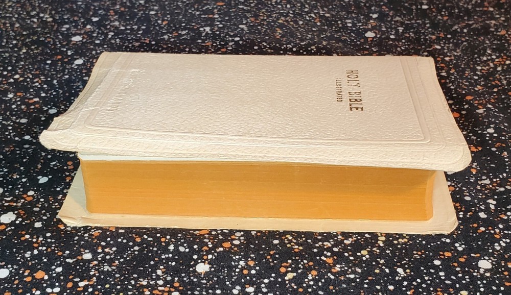 This is a very precious Bible with lots of great illustrations! I listed it in acceptable+ or better condition mainly because the cover has a slight curve! I believe that the curve on the cover could be corrected if a heave object was set on top of it for awhile. Also, there is a faint name stamp on the cover (pictured) No ripped, bent or missing pages. The binding is tight and the pages are nice! There is a name written on the presentation page but the family registry is blank and there is no other writing or markings inside. I believe that this book was published in the 1950's but I am not 100% sure because there was no date inside. Comes from a Pet/Smoke free home. Lots of life left! It would look great on your shelf! All Photos are of the actual book and not stock photos! The book in the listing is the book you'll receive. Please visit our ebay store for more great vintage and hard to find books! New items added daily!