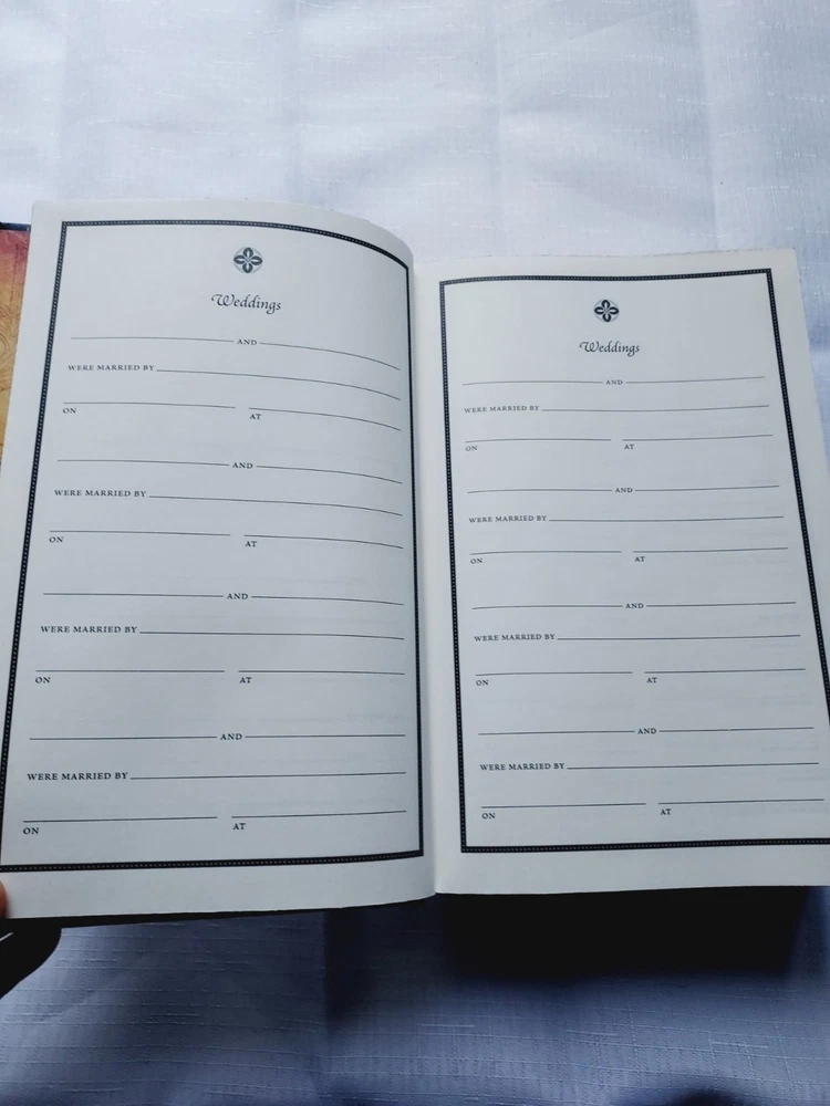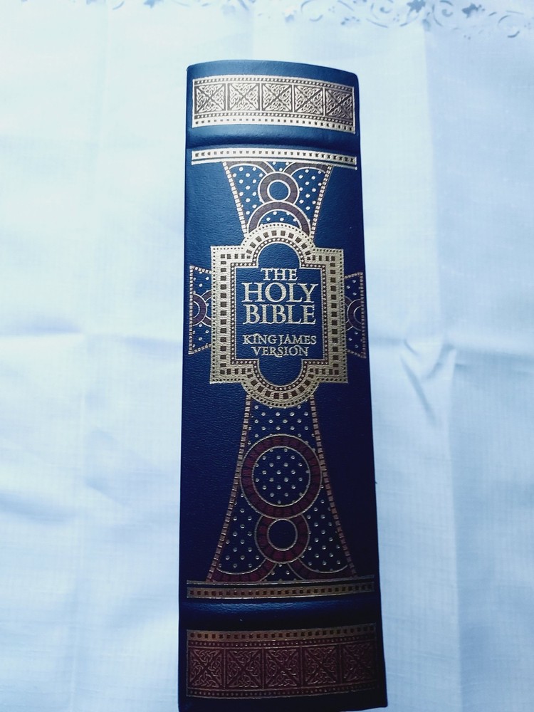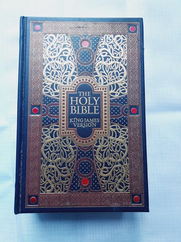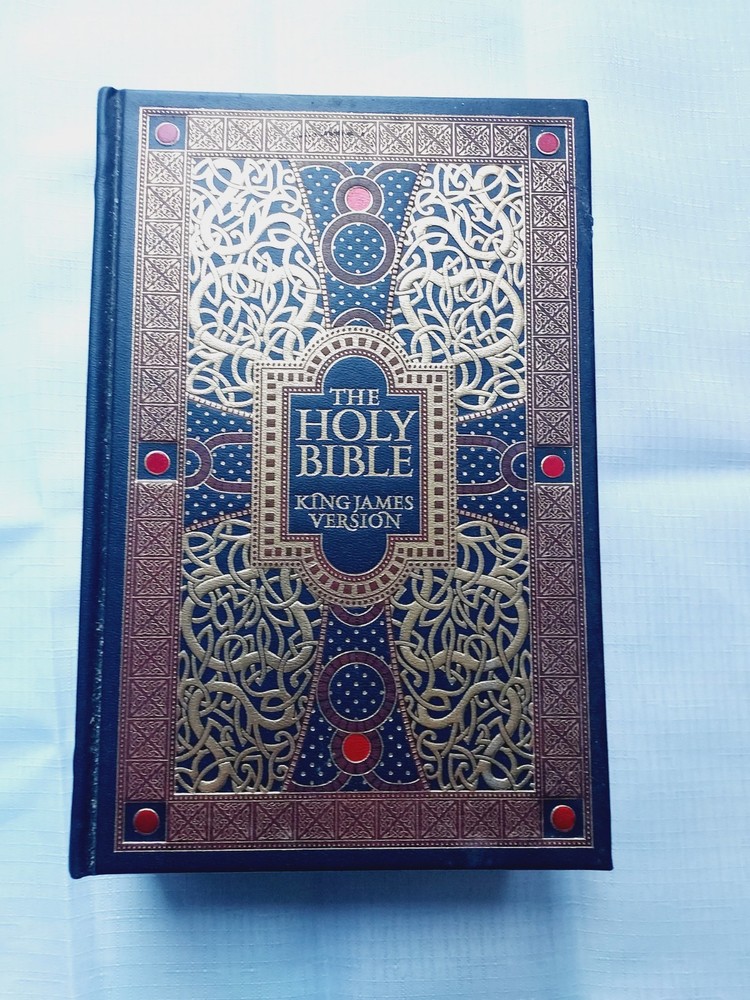 King James Version *** THE HOLY BIBLE *** Leather Bound Collectible Edition! This edition, bound in genuine bonded leather with decorative page edges and ribbon bookmark, is an elegant addition to any home library and makes a treasured heirloom. There is a section in the book to record personal family information such as births and marriages. No writings or marks Product dimensions: 6.50(w) x 9.40(h) x 2.70(d)
