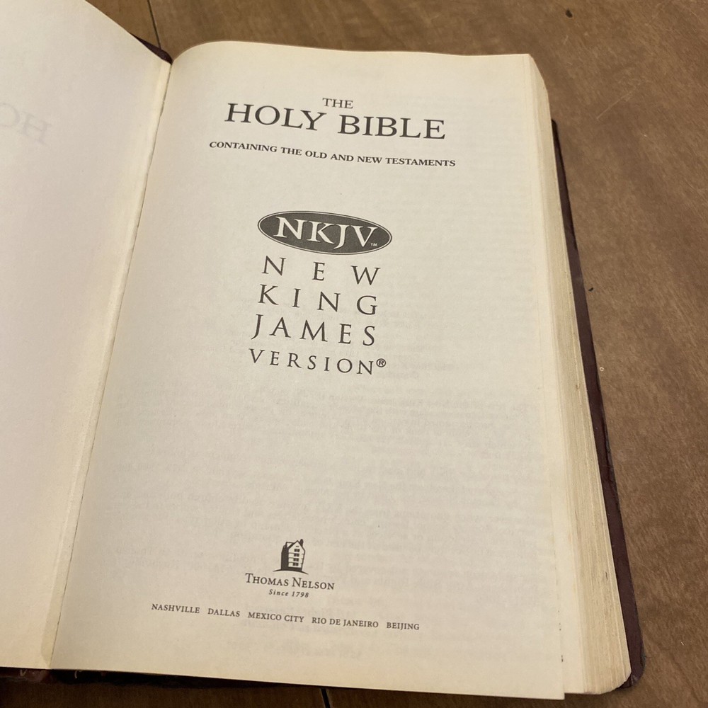 Holy Bible NKJV New King James Version Thomas Nelson Faux Leather Red. Condition is Good. Shipped with USPS Media Mail.
