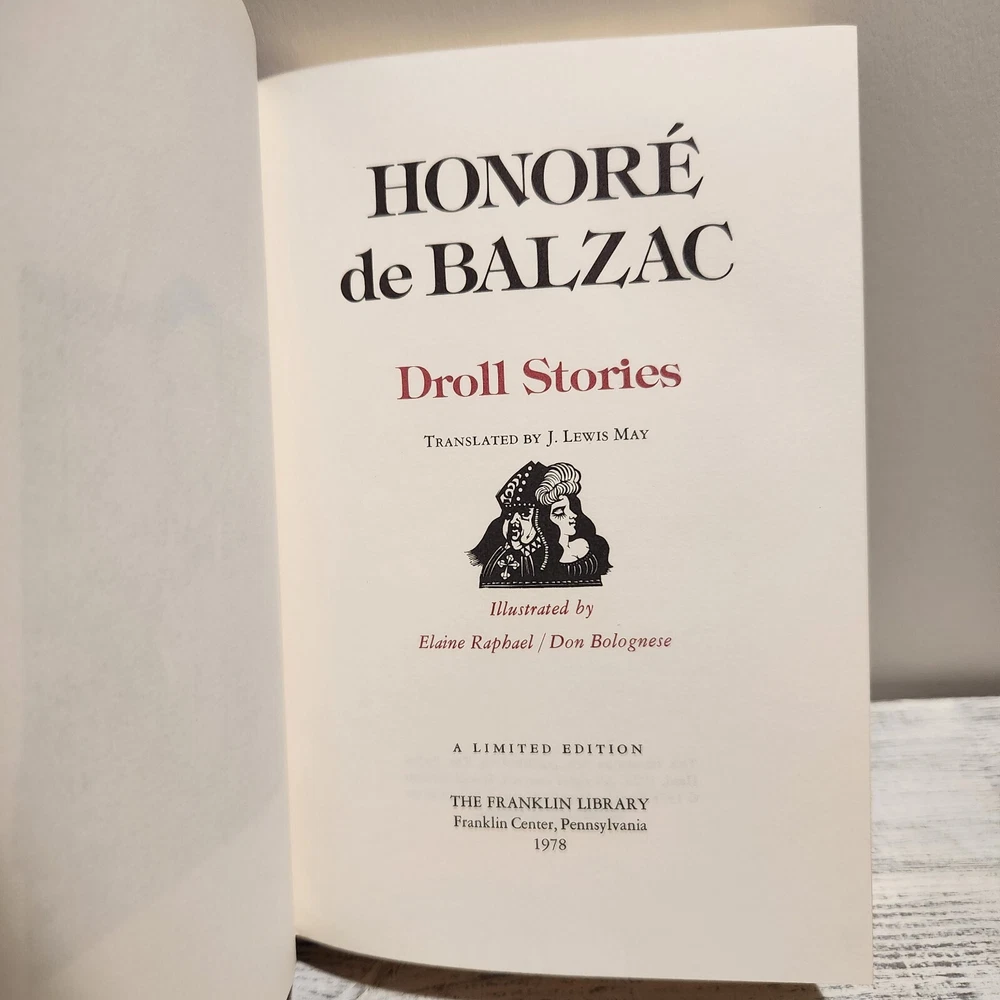Honore de Balzac Droll Stories Franklin Library Limited Edition (Published 1978). Book has some minor wear but overall in excellent condition Please view pictures closely, what is shown is the exact item that will be shipped