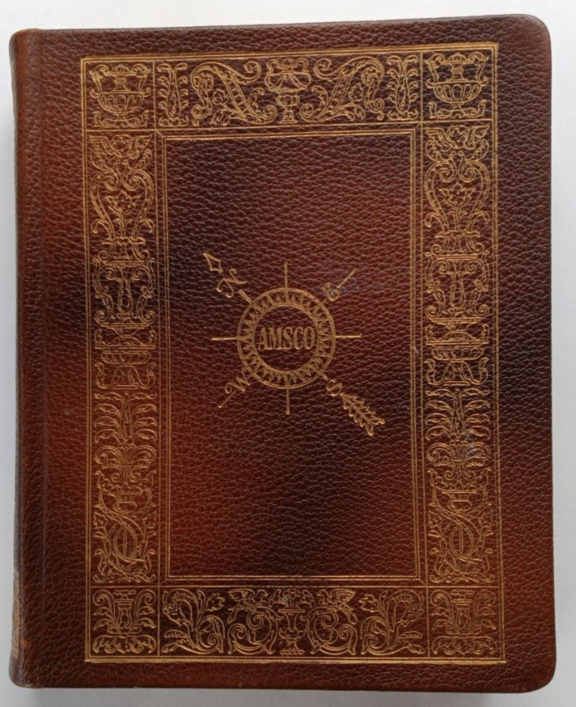 Very RARE leather-bound AMSCO copy. 1960, Charles Scribner's Sons. Cover has light wear with some scuffing to edges. Some soiling to closed page edges. Tiny stains to some pages. Very light tanning to page edges. Pencil markings to a few pages. No names or address labels on first pages. No folds or tears in text. Tight binding. We package with great care and ship quickly in cardboard. Discount when you buy multiple items in one order. Chris' Li'l Bookstore: serving satisfied customers since 2006. We sell books, music, records, CDs, DVDs, and audiobooks. All USA orders shipped Media Mail only, unless another option is selected and paid for.