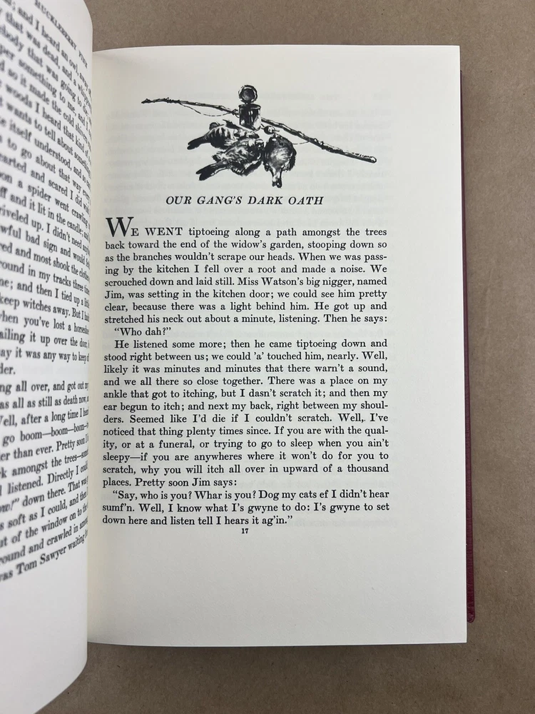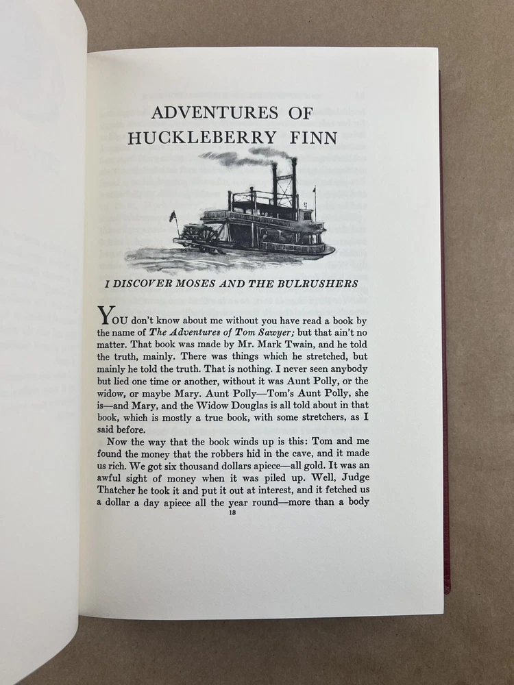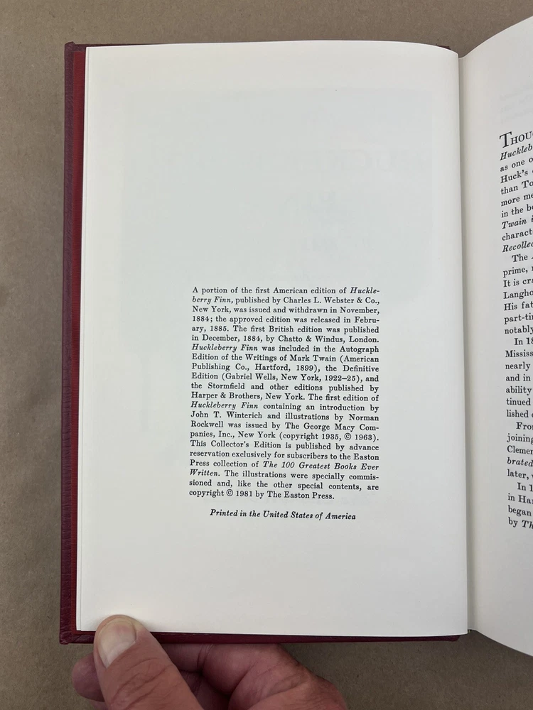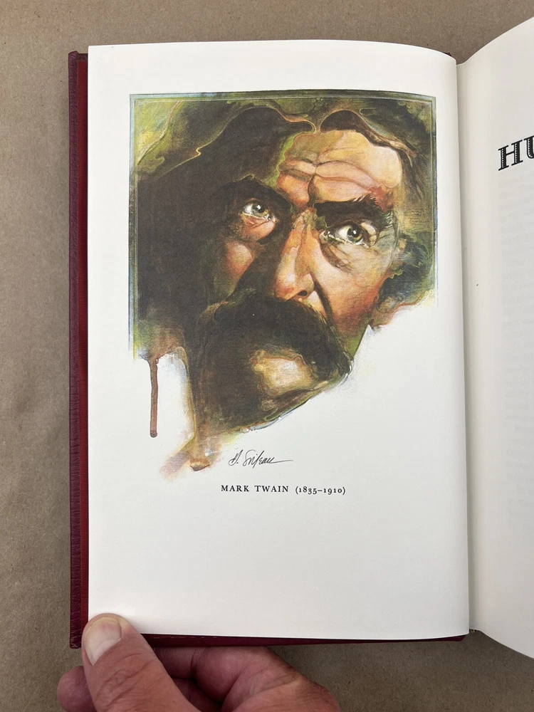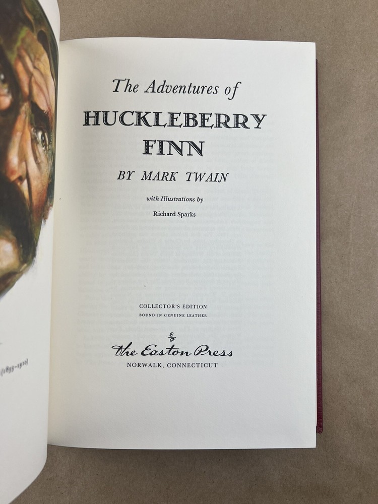 The Adventures of Huckleberry Finn Mark Twain Richard Sparks (Illustrations) Easton Press, 1981 Limited Edition Leatherbound in Very Good condition. Minimal edge/shelf wear. Book is pre-owned but seemingly seldom read. Tight and square binding, bright cover, and no writing inside. Nice reading copy. Review pictures for condition. Please ask any questions before purchase.