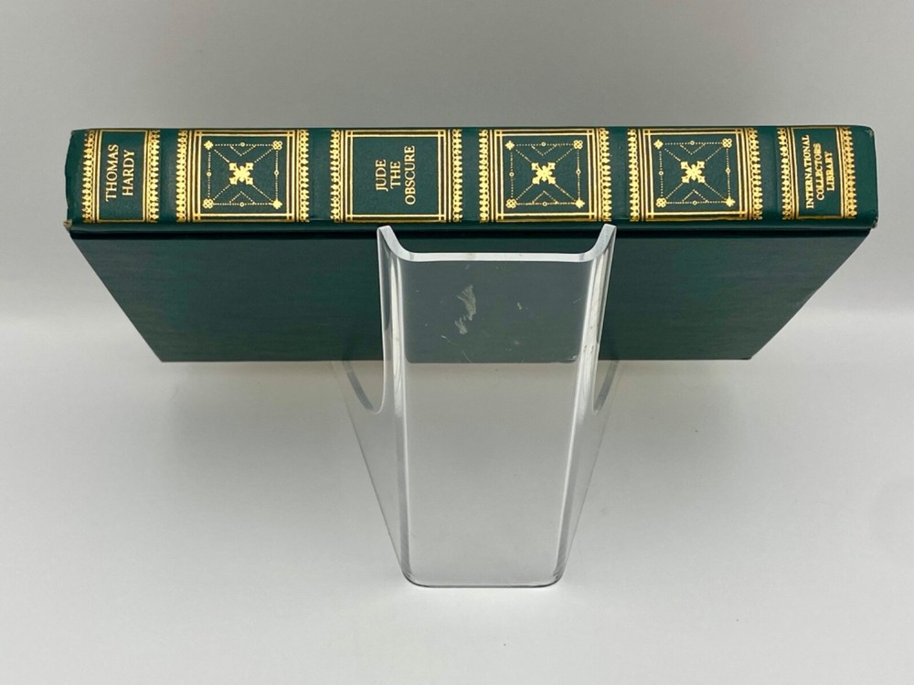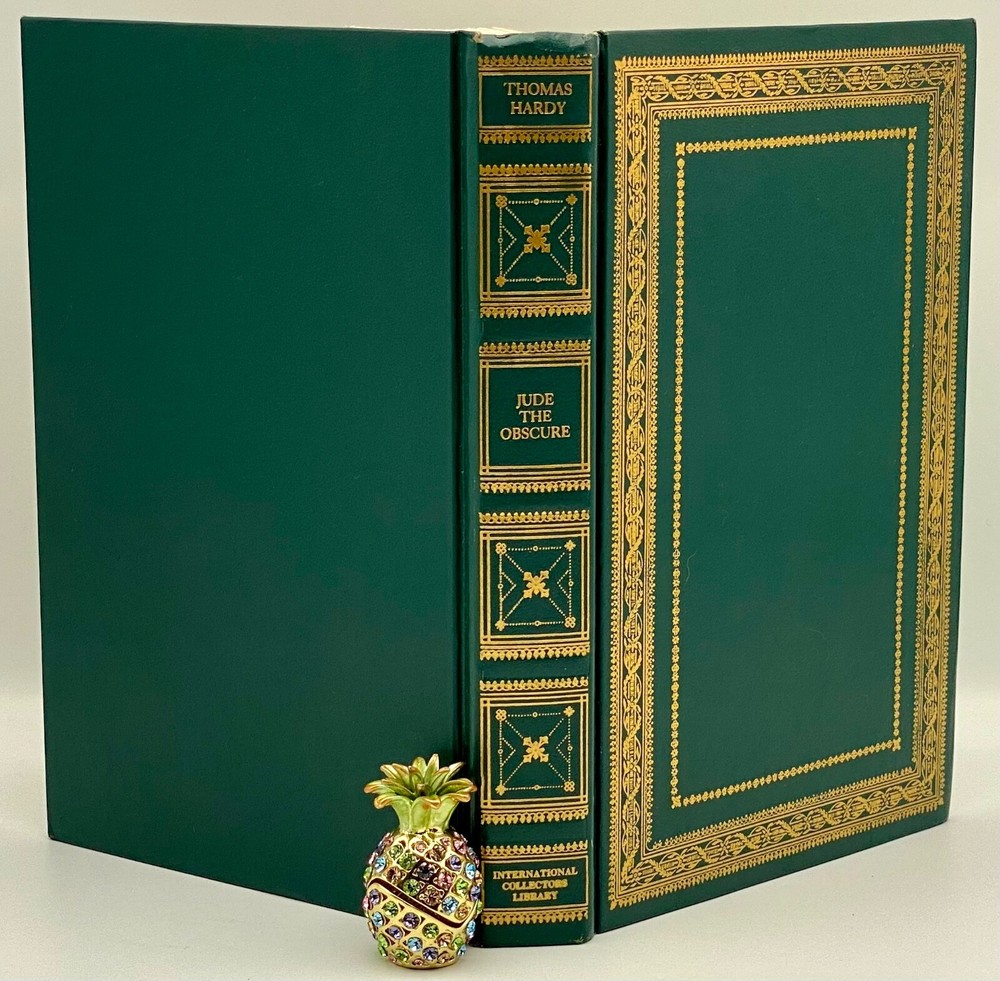 MAKES THE PERFECT GIFT FOR ANY FAN OF THE CLASSICS / VINTAGE COLLECTIBLE BOOKS / BRITISH LITERATURE / THOMAS HARDY ** PLEASE READ : Mahalo for taking the time to look at our listing. We truly appreciate it. We always do our BEST to give you the most accurate description of these beautiful books. If, however, you have any SPECIFIC questions about the SIZE of the book, NUMBER of pages, TYPE of leather, SMELL or FEEL of the book, PLEASE email us through EBay’s mail system BEFORE you bid, and we will be HAPPY to give you more information. We want you to be completely happy with your purchase and keep you as our customers for years to come!** DESCRIPTION: INTERNATIONAL COLLECTORS LIBRARY’s fine leatherette binding, long out of print edition of JUDE THE OBSCURE by THOMAS HARDY. THIS IS A VINTAGE HEIRLOOM INTERNATIONAL COLLECTORS EDITION WITH LAVISH GILT IMPRESSIONS TO THE BOARDS AND SPINE DONE IN ACTUAL 24K GOLD . THIS IS ONE OF THE MOST HIGHLY-PRIZED & MOST BEAUTIFUL EDITIONS OF THIS CLASSIC. 🍍 NOT INCLUDED … 😃 The International Collectors Library was a book club series published by Doubleday Book & Music Clubs, Inc. from the late 1940’s through the late 1980’s. Generally, the books followed the 8-1/2″ x 5-3/4″ book size format. The binding designs were adapted based on old “Golden Age of Bookmaking” bindings, and made to look like leather-bound copies (leatherette). The bindings were embossed with 24K gold embellishments, and some copies had gilt edges (thin layer of gold leaf) applied. A sewn in satin ribbon marker was also added in most books. There were over 400 editions published in a variety of bindings. Some editions came with loose-leaf inserts that described the book club, the bindings and design styles, and a story synopsis of the book-in-hand. ABOUT THE BOOK: In 1895 Hardy’s final novel, the great tale of Jude the Obscure , sent shock waves of indignation rolling across Victorian England. Hardy had dared to write frankly about sexuality and to indict the institutions of marriage, education, and religion. But he had, in fact, created a deeply moral work. The stonemason Jude Fawley is a dreamer; his is a tragedy of unfulfilled aims. With his tantalizing cousin Sue Bridehead, the last and most extraordinary of Hardy’s heroines, Jude takes on the world—and discovers, tragically, its brutal indifference. The most powerful expression of Hardy’s philosophy, and a profound exploration of man’s essential loneliness, Jude the Obscure is a great and beautiful book. “His style touches sublimity.” —T. S. Eliot CONDITION: Book is in AMAZING ALMOST LIKE-NEW condition for its age with only a tiny bit of shelfwear to the boards (SEE PICS FOR BETTER DETAILS). NO WRITING FROM PREVIOUS OWNER, ETC. It is a BEAUTIFUL edition, and MAKES A GREAT VINTAGE READING COPY! SHIPPING: FREE TO US ADDRESSES ONLY. INTERNATIONAL $ based on location. WE SHIP PRIORITY & PACK VERY WELL. Please check out our other listings of Easton Press, Franklin Library, Limited Editions Club, First Edition Library, Folio Society, Heritage Press, and International Collectors Library editions. WE DO COMBINE SHIPPING IF YOU PURCHASE MORE THAN ONE COPY. Mahalo for looking at our listings! By bidding/purchasing this item, you are helping a very grateful family who sends you our WARMEST ALOHA & MAHALO!