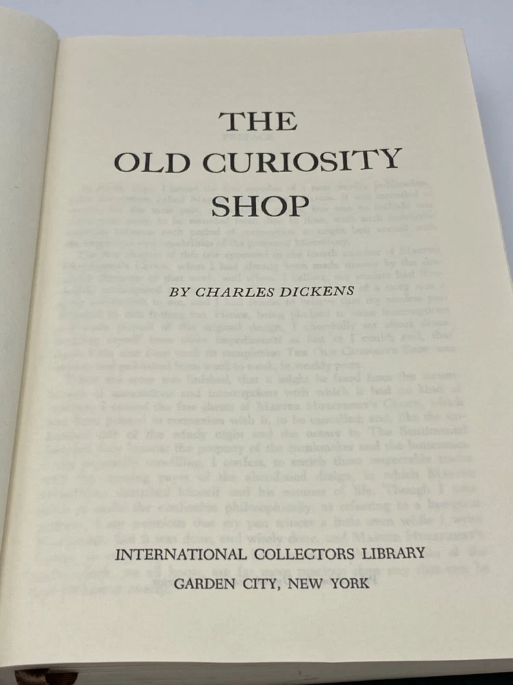 MAKES A GREAT GIFT FOR ANY FAN OF CHARLES DICKENS / VINTAGE CLASSICS ** PLEASE READ : Mahalo for taking the time to look at our listing. We truly appreciate it. We always do our BEST to give you the most accurate description of these beautiful books. If, however, you have any SPECIFIC questions about the SIZE of the book, NUMBER of pages, TYPE of leather, SMELL or FEEL of the book, PLEASE email us through EBay’s mail system BEFORE you bid, and we will be HAPPY to give you more information. We want you to be completely happy with your purchase and keep you as our customers for years to come!** DESCRIPTION: INTERNATIONAL COLLECTORS LIBRARY’s fine leatherette binding, long out of print. A THIS IS A VINTAGE HEIRLOOM ICL WITH LAVISH GILT IMPRESSIONS TO THE BOARDS AND SPINE BOOK DONE IN ACTUAL 24K GOLD . IT IS ONE OF THE MOST HIGHLY-PRIZED EDITIONS OF THIS DICKENS CLASSIC. 🍍 NOT INCLUDED… 😃 The International Collectors Library was a book club series published by Doubleday Book & Music Clubs, Inc. from the late 1940’s through the late 1980’s. Generally, the books followed the 8-1/2″ x 5-3/4″ book size format. The binding designs were adapted based on old “Golden Age of Bookmaking” bindings, and made to look like leather-bound copies (leatherette). The bindings were embossed with 24K gold embellishments, and some copies had gilt edges (thin layer of gold leaf) applied. A sewn in satin ribbon marker was also added in most books. There were over 400 editions published in a variety of bindings. Some editions came with loose-leaf inserts that described the book club, the bindings and design styles, and a story synopsis of the book-in-hand. ABOUT THE BOOK: The Old Curiosity Shop tells the story of Nell Trent, a beautiful and virtuous young girl of "not quite fourteen". An orphan, she lives with her maternal grandfather (whose name is never revealed) in his shop of odds and ends. CONDITION: Book is in EXCELLENT condition for its age with minor shelfwear to the tips of the boards and a few minor rubs to the boards and endpages (SEE PICS FOR FURTHER DETAILS). NO WRITING FROM PREVIOUS OWNER, ETC. It is a BEAUTIFUL edition. SHIPPING: FREE TO US ADDRESSES ONLY. INTERNATIONAL $ based on location. WE SHIP PRIORITY MAIL & PACK VERY WELL. Please check out my other listings of Easton Press, Franklin Library, Limited Editions Club, First Edition Library, Heritage Press, and Folio Society editions. WE DO COMBINE SHIPPING IF YOU PURCHASE MORE THAN ONE COPY. Mahalo for looking at our listings! By bidding/purchasing this item, you are helping a very grateful family who sends you our WARMEST ALOHA & MAHALO!
