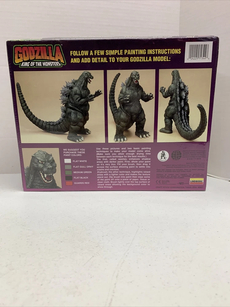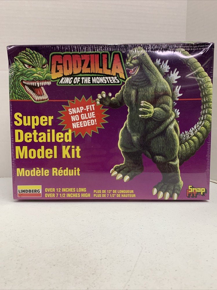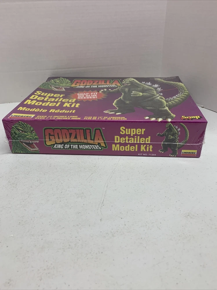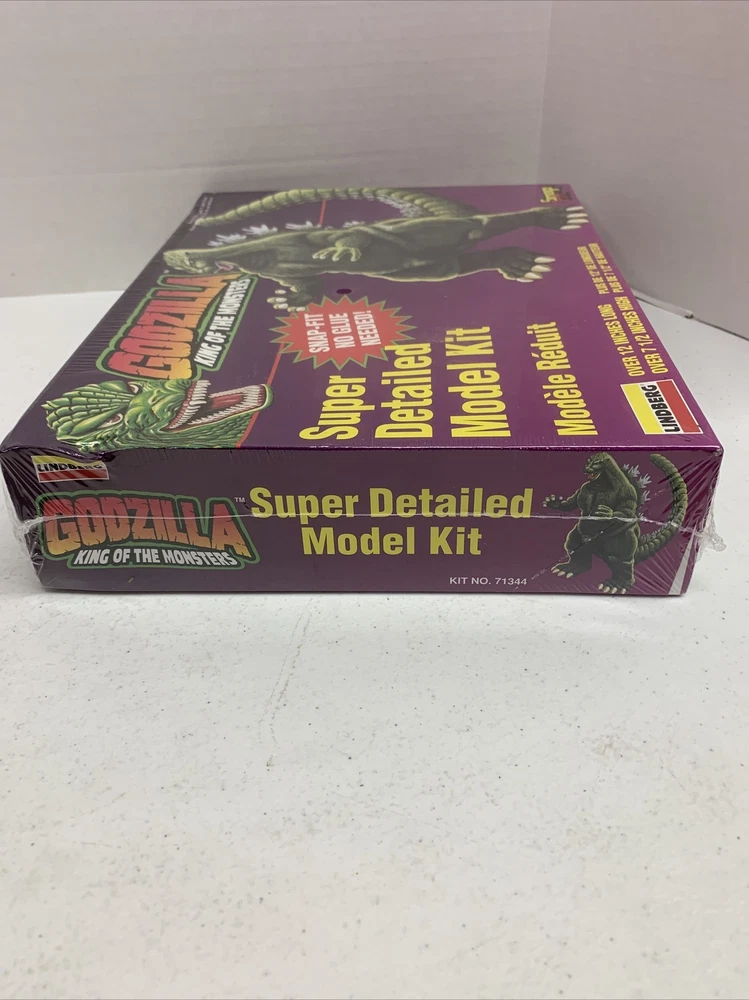 Vintage IOB Lindberg Snap Fit Godzilla King of Monsters 12" Scale 1995 Model Kit 71344. Condition is listed as used but item still wrapped and never opened. Box does have bends but no major damages. Please see photos for reference. Shipped with USPS Priority Mail.