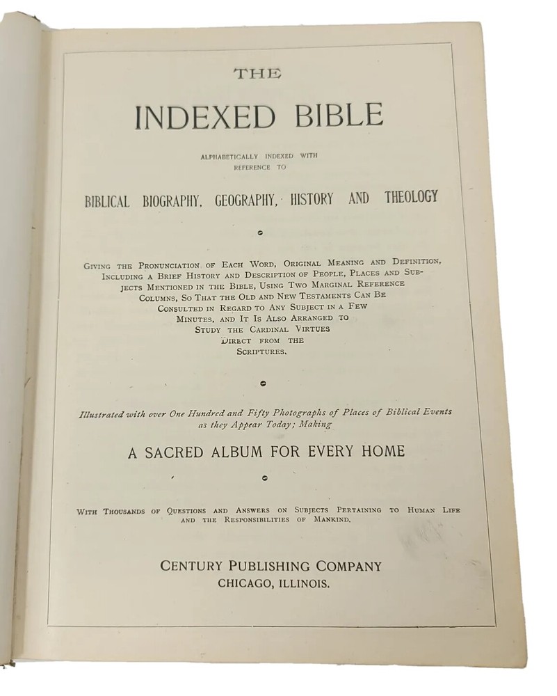 Holy Bible Indexed Bible, Illustrated Family Century Album, Copyright 1902.