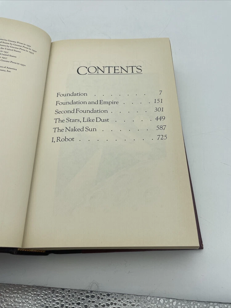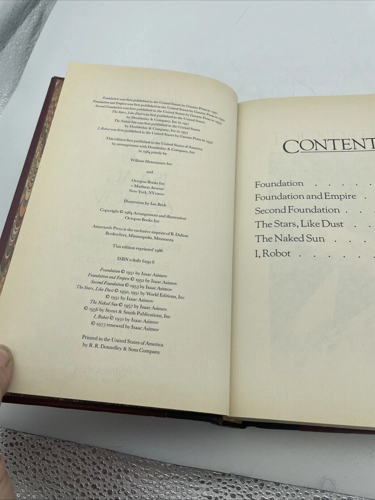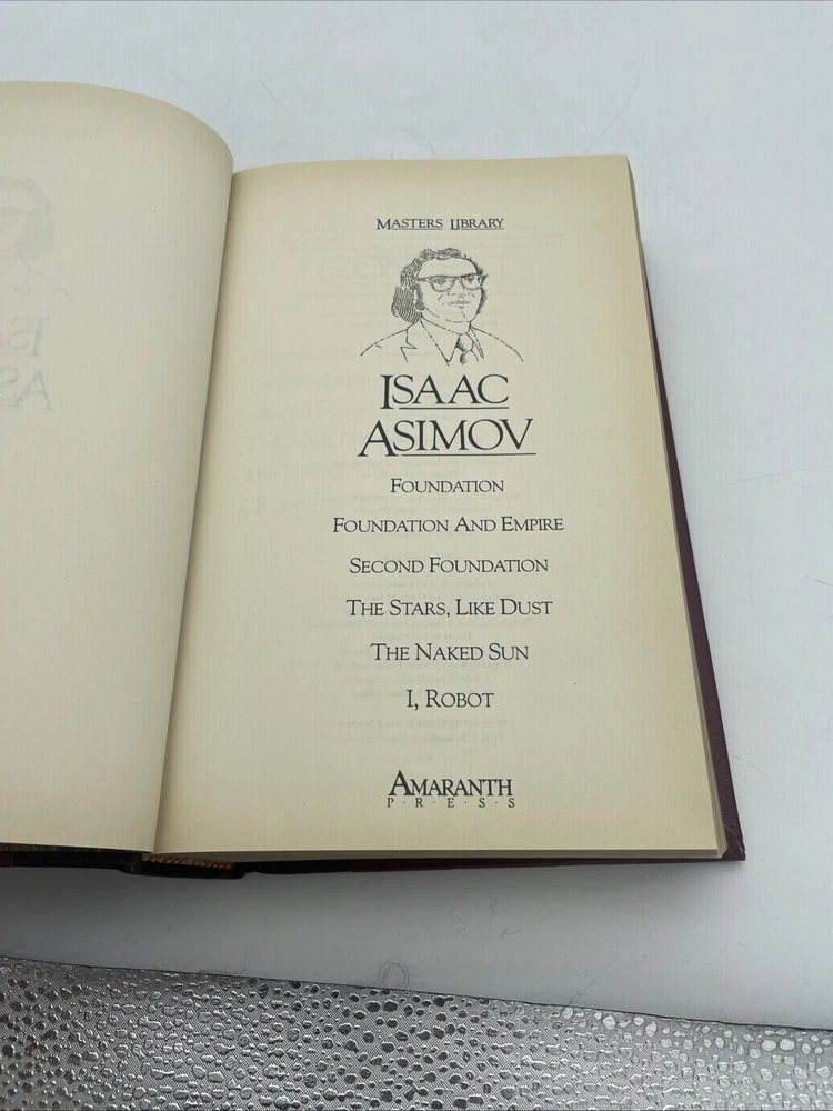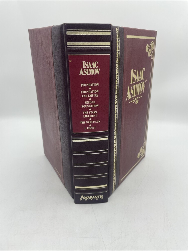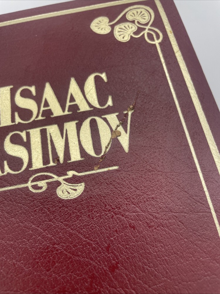 Bonded leather cover. One scratch on front right through the o and v of Asimov. Please see pictures! 1986 edition. Some discoloration to pages inside....