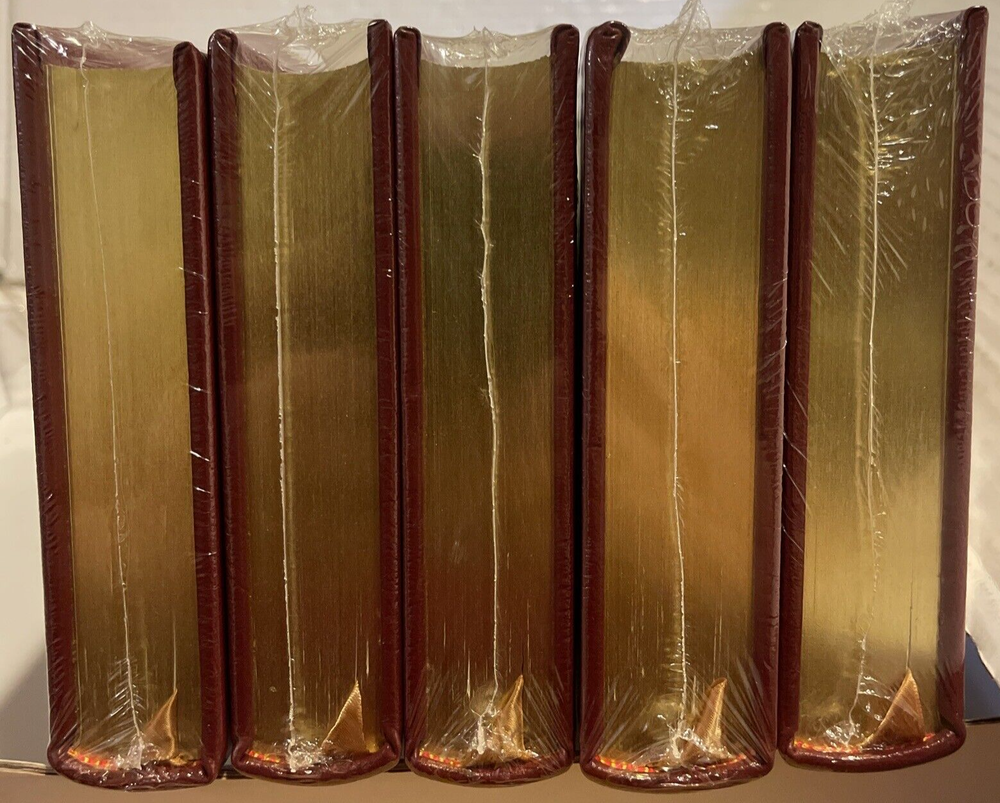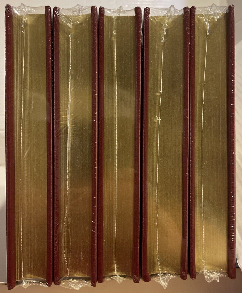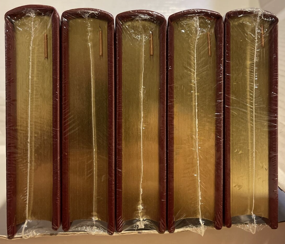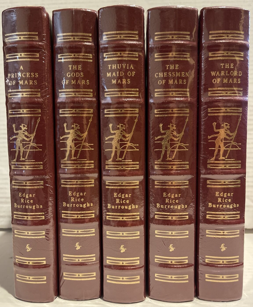 My wife is making me thin down my collection so I will be listing many great books in the next few months. Princess of Mars The Gods of Mars Thuvia Maid of Mars The Chessmen of Mars The Warlord of Mars Burroughs Edgar Rice 5 Book Set bound in Genuine Leather w/ Salmon Ribbon Marker 2004 (Easton Press) Maroon Leather Cover Gold Title / Page ends are gilded in 22-karat gold Books will be packed to arrive as they left. Will Combine Shipping Check out my other items ! Be sure to add me to your favorites list ! Genuine full colored leather with 22KT gold design on hubbed spine, front & back covers. Gilt gold page edges. Lustrous moire silk end pages. Satin ribbon page marker. Thread sewn pages for durability and strength. Printe d on aci d neutra l archival paper. Condition: Excellent condition has been resealed by previous owner. See Pics. The Easton Press books feature some of the most renowned works of literature in the most beautiful leather-bound editions which will be the cornerstone of your home library or the perfect gift for any book collector.