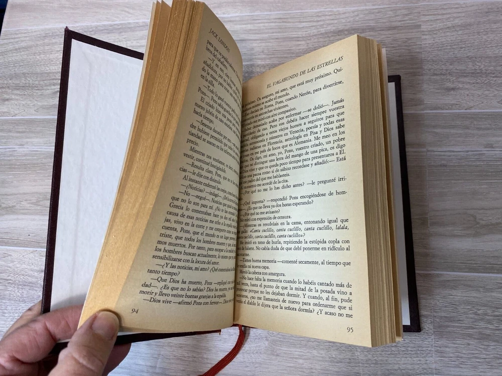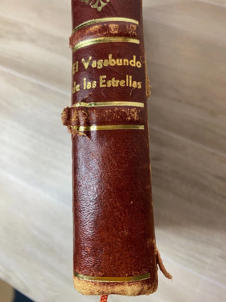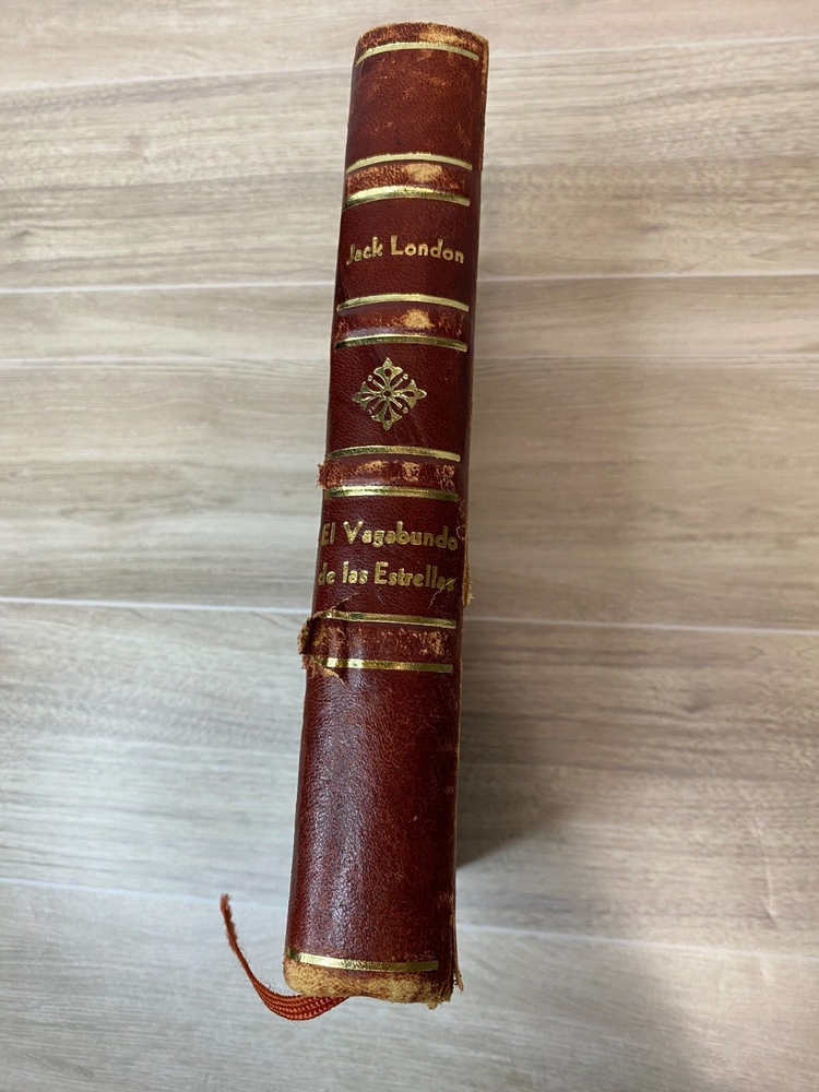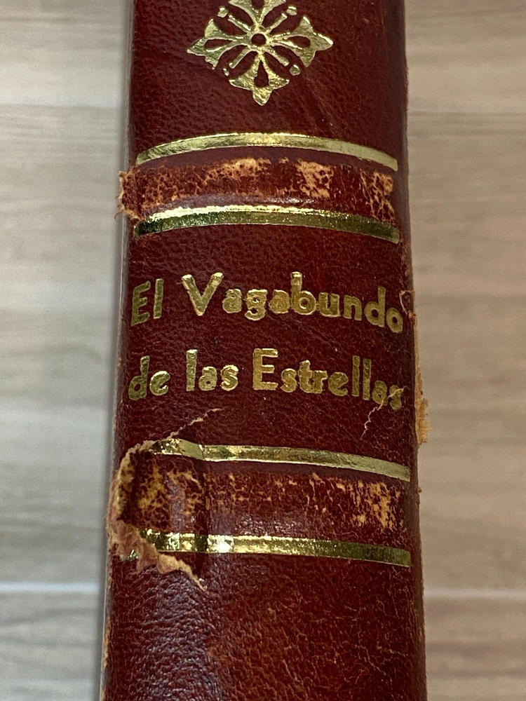 This vintage Spanish hardcover of *El Vagabundo de las Estrellas* by Jack London is a true collector's gem! The leather spine and classic design give it a timeless charm, perfect for fans of classic literature. Though it shows some wear—like the binding tear and spine damage—the pages remain in great condition, with only a small inscription inside. A rare find for book lovers who appreciate history and character in their reads!