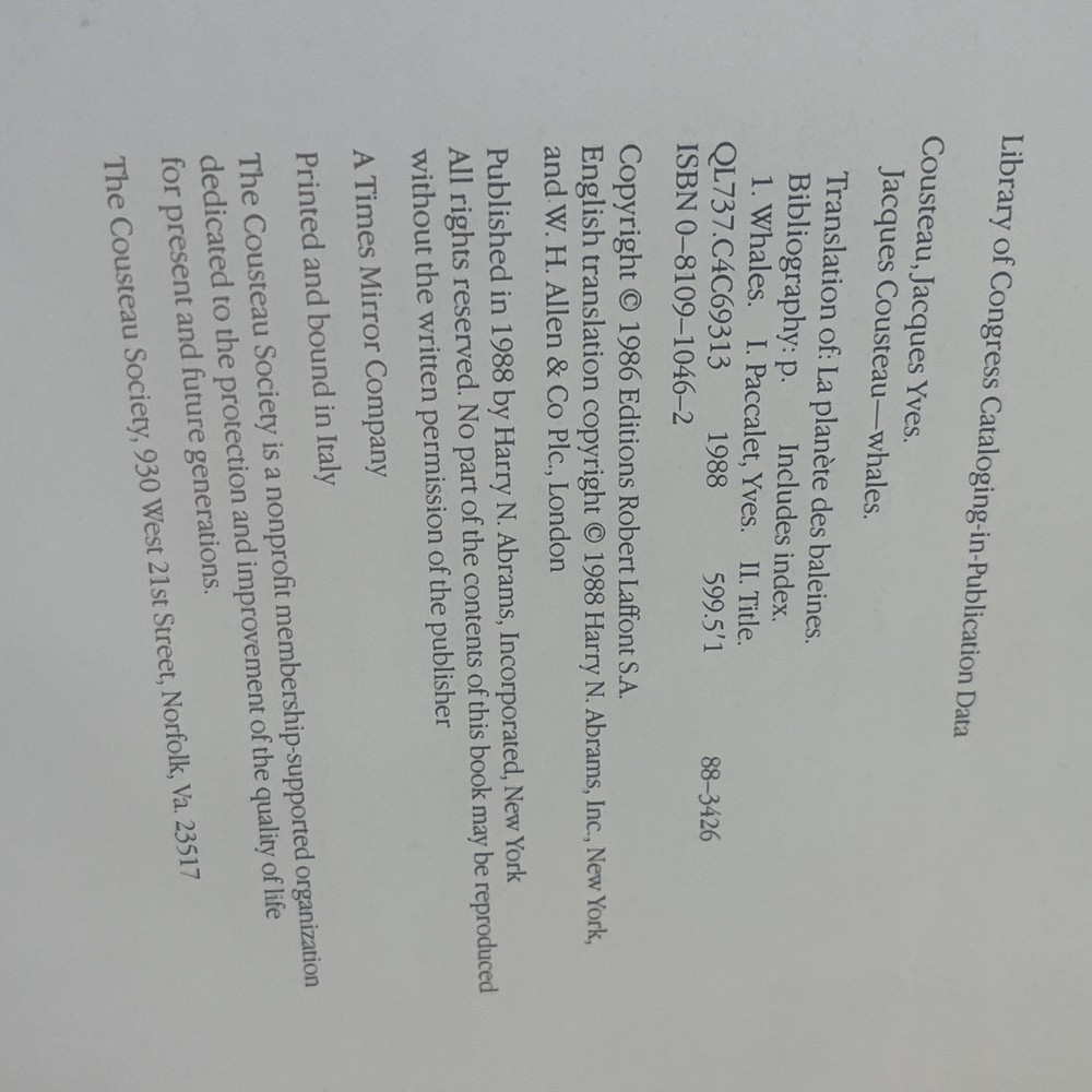 | Publication Name | Jacques Cousteau : Whales |