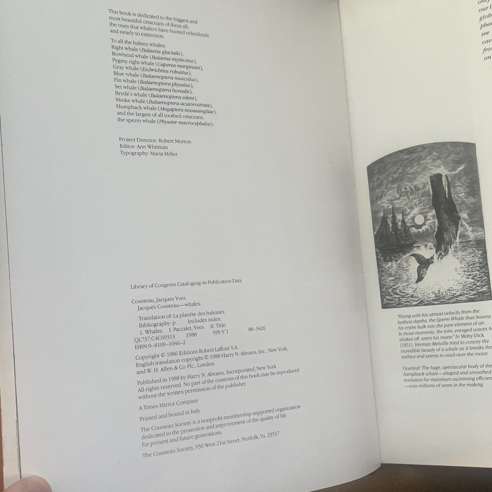 | Subject | Ecology, Evolution, Feminism, General Knowledge, Geology, History, Literature, Logic, Paleontology, Teaching, Veterinary Studies, Zoology, Jacques Cousteau Whales Limited Edition Hardcover Book |