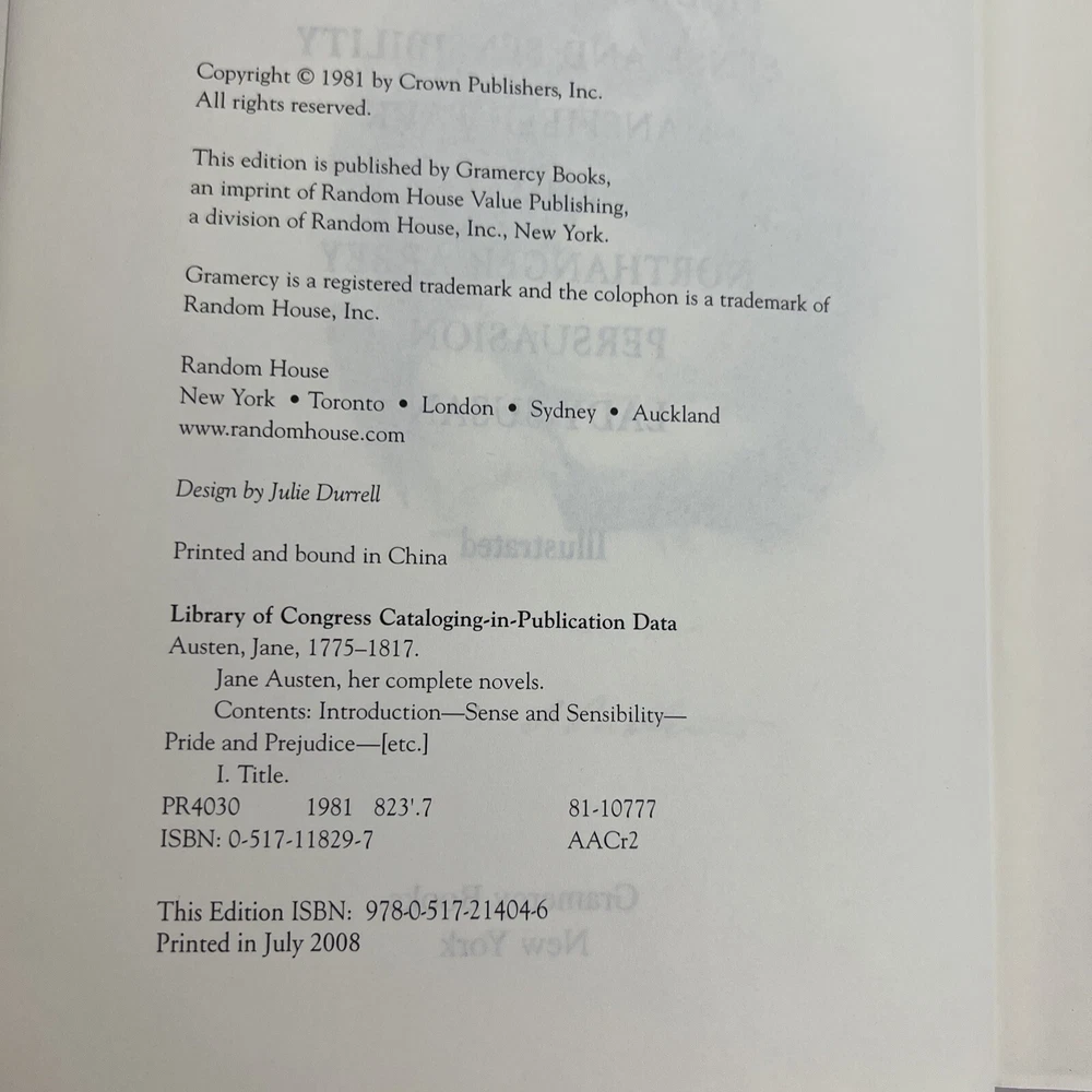 Jane Austen The Complete Novels Gramercy Books Padded Hardcover Literary Classics Printed in 2008 9.25" x 6.25" x 2.5"...