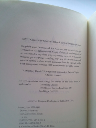 Jane Austen: Four Novels by Austen, Jane Shelf and handling wear to cover and binding, with general signs of previous use. Wear commensurate with age and use. Clean unmarked copy. Light scuffing and smudging to boards and spine strip. Secure packaging for safe delivery.