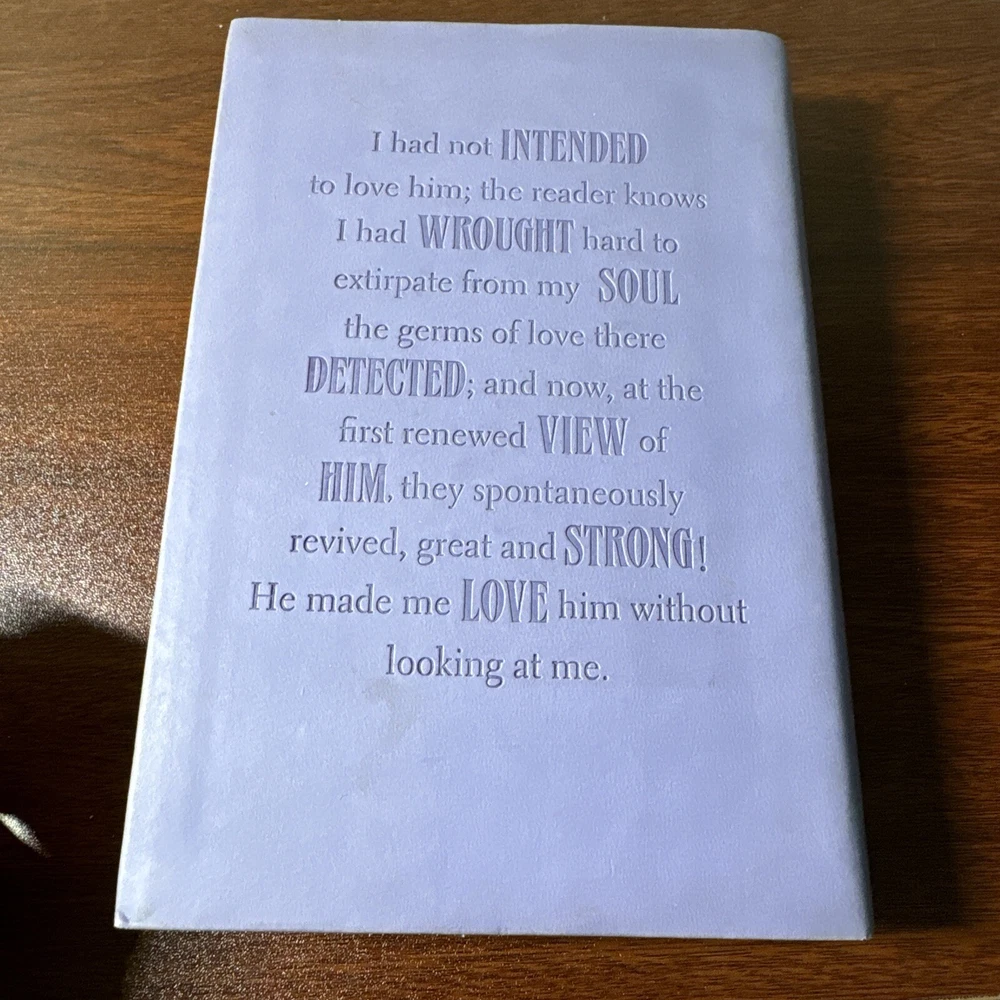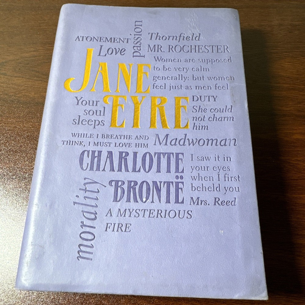 Jane Eyre by Charolette Bronte Collectible Deluxe Gift Soft Leather Feel Book. Never been read, new, but there are marks from pressure from the bookshelf (shown) and a few dirty spots on the cover (in picture)