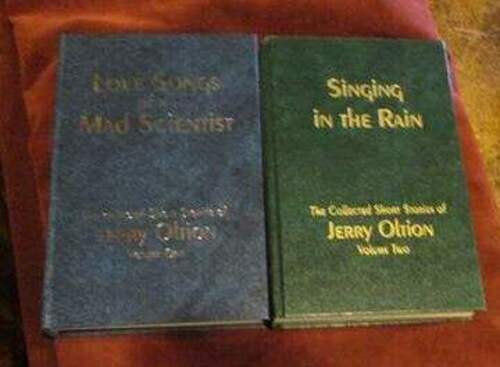 Jerry Oltion - COLLECTED SHORT STORIES - 2 vol leather - SIGNED LMTD FIRST Description Beautiful 2 volume set of this story collections from this much published SF author Hypatia Press 1993 LOVE SONGS OF A MAD SCIENTIST The early years 1964 - 1968 Intro by Stanley Schmidt Book is FINE unread in blue leather This is Copy 134 of 250 & Signed by Oltion on limitation page (see photo) Hypatia Press 1994 SINGING IN THE RAIN Volume Two Intro by Kathy Oltion Book is FINE unread in green leather This is Copy 13 of 250 & Signed by Oltion on limitation page (see photo) eBay #XXXL4/23 About Me I'm a book collector first. Book dealer second. Most signed books were obtained by me personally and all signatures guaranteed authenic. Extensive library of over 10,000 books with speciality in science fiction, fantasy, mystery and modern firsts. I'm always out bookscouting and adding to inventory See my other listings for more great items! Payment Payment Policies EBAY only accepts PAYPAL now. Shipping Shipping Policies SHIPPING IS NORMALLY MEDIA RATE OR PRIORITY ON REQUEST. ADDITIONAL BOOKS USUALLY ONLY $1.00 MORE/BOOK (Domestic) . BOOKS ALWAYS BOXED AND I ALWAYS BUBBLE WRAP OVERSEAS & CANADA SHIPPING IS NORMALLY GLOBAL PRIORITY FLAT RATE ENVELOPE (I also use bubble wrap). I CAN SHIP 4 (sometimes 5 or 6 depending on size) IN A FLAT RATE GLOBAL PRIORITY BOX WHICH INCLUDES SOME INSURANCE so shop my store! The Global Priority Flat-Rate Box comes with insurance. eBay Store txzj pxzj2834 txzj67