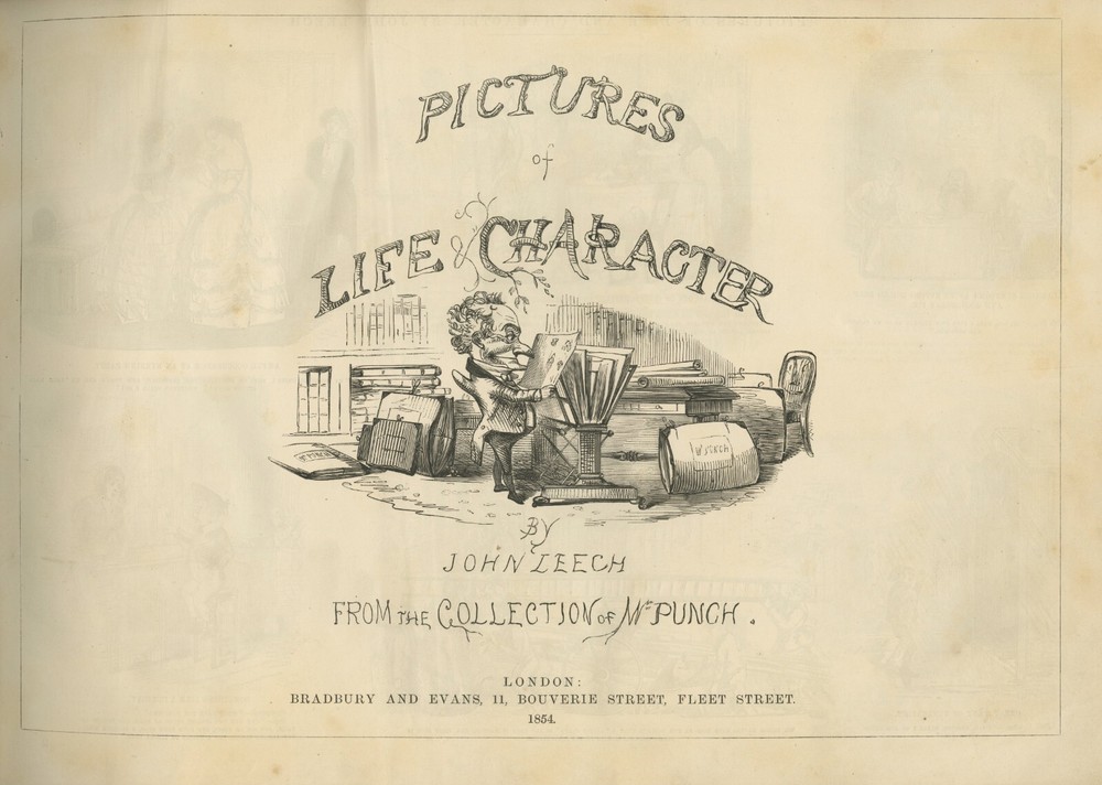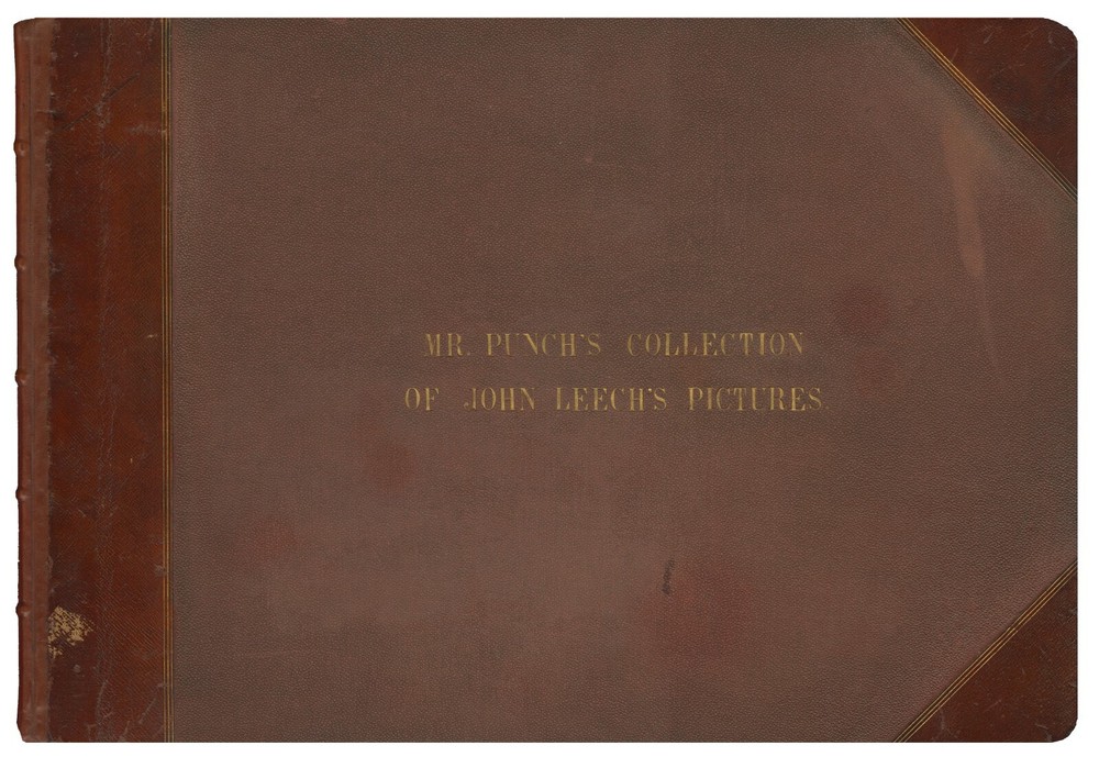 A massive single volume, originally bound by the MacLehose firm of Glasgow (and bearing their stamp), holding the first four Series of John Leech's collected illustrations issued in parts between 1854 and 1863 (a Fifth Series was issued in 1869 but is not present here, suggesting this was bound prior to its release). Each series with several hundred engraved vignette illustrations after drawings by Leech. Complete pagination here: First Series (1854): 94pp., including title and index ; Second Series (1857): 96pp., including title ; Third Series: (1860): [96]pp., including title and index ; Fourth Series (1863): 96pp, including title. LEECH, John. PICTURES OF LIFE AND CHARACTER FROM THE COLLECTION OF MR. PUNCH [First Through Fourth Series, Bound in a Single Volume by MacLehose of Glasgow] . London: Bradbury and Evans, (1854-1863). Approximately 18" x 12 1/2." Red cloth over boards with quarter smooth maroon leather over spine, corners. Gilt tile lettering over upper cloth: "MR. PUNCH'S COLLECTION / OF JOHN LEECH'S PICTURES." Partial binder's stamp of MacLehose of Glasgow at upper margin of blank recto of first endpaper (first letter ("M") of stamp perished in tiny bit of corner loss from leaf). Spine entirely restored in plain maroon leather with five raised bands. All page edges gilt. Marbled endpapers. With the armorial bookplate of a Robert Davidson affixed to interior of upper board. Cloth with moderate handling wear, gilt dulled. Sound with its attractive and period appropriate spine restoration. Very good. FREE FedEx Ground shipment to The USA, safely packed and promptly dispatched same business day as payment. Please don' t hesitate with questions and thanks for looking.