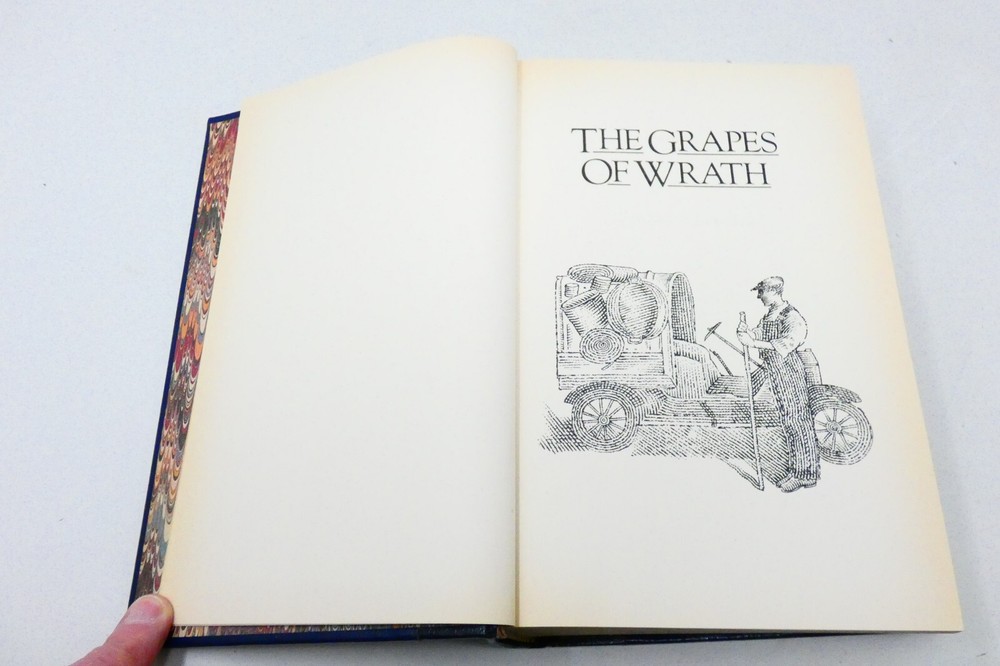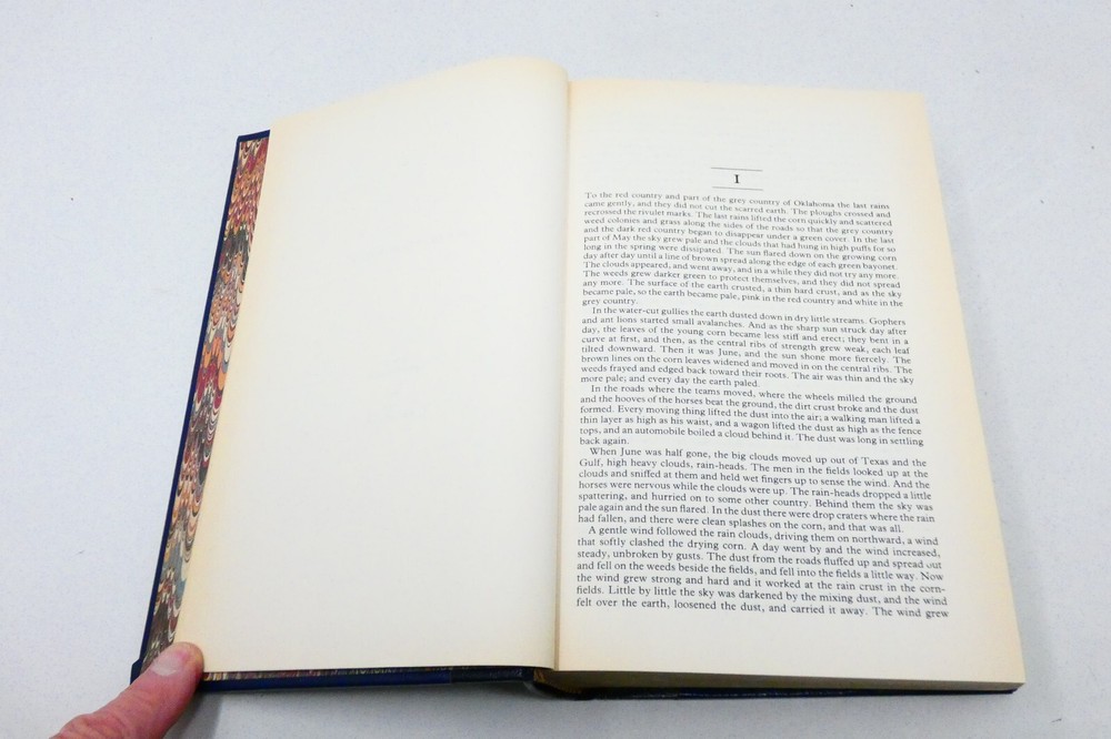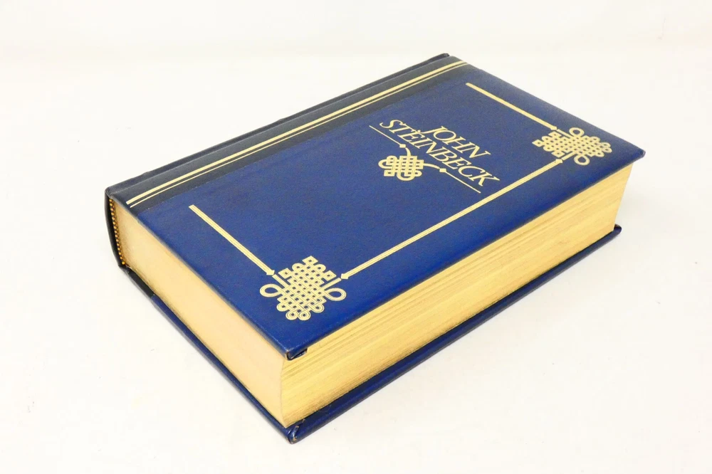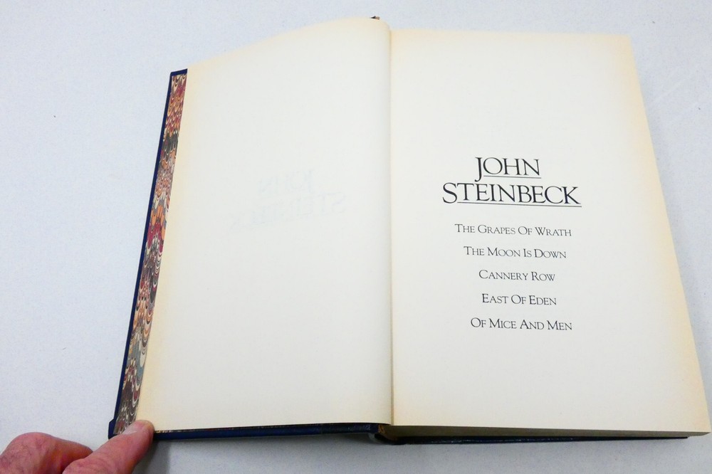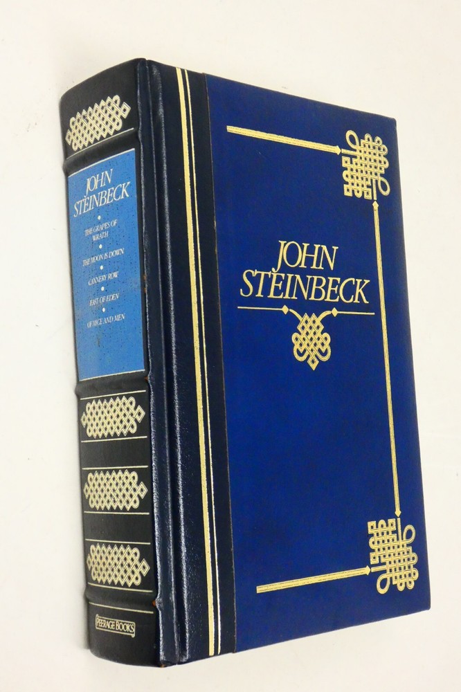 John Steinbeck 5 Novels: The Grapes of Wrath The Moon Is Down Cannery Row East of Eden Of Mice and Men Bonded Leather Collection ~ Peerage Books Dimensions: 9 1/2 by 6 1/2 by 2 3/8 inches Very Good Preowned Condition: The book is free of writing and shows no real signs of being read. The pages are clean but are yellowed just a bit. I'm not sure if this is how they were originally, or if they have aged a little. The corners have the tiniest of marks.
