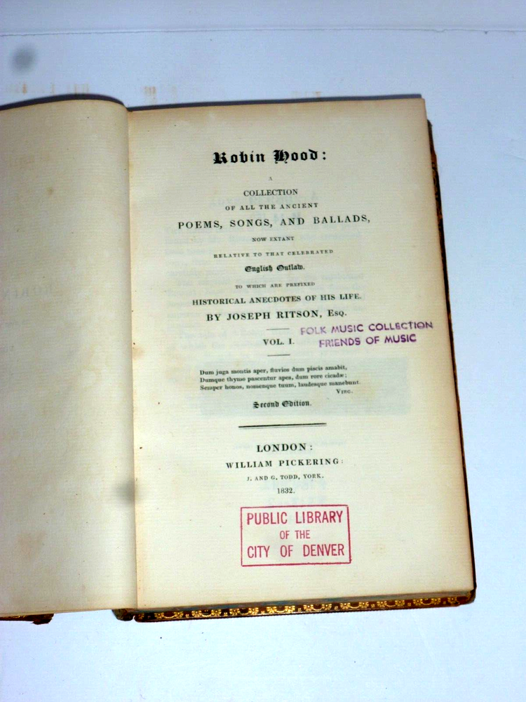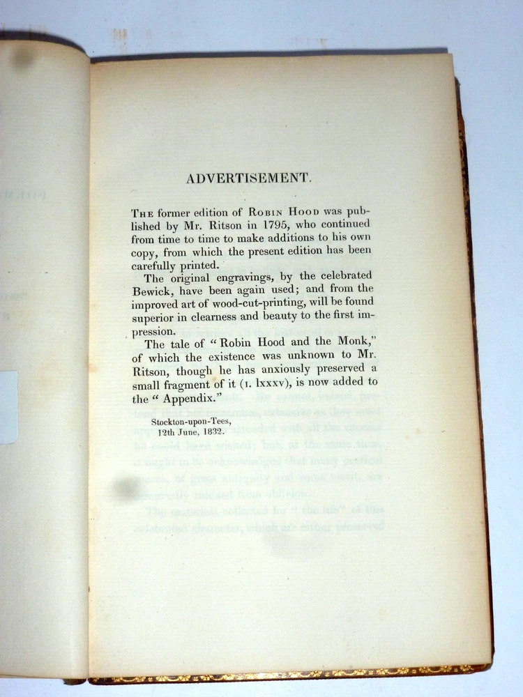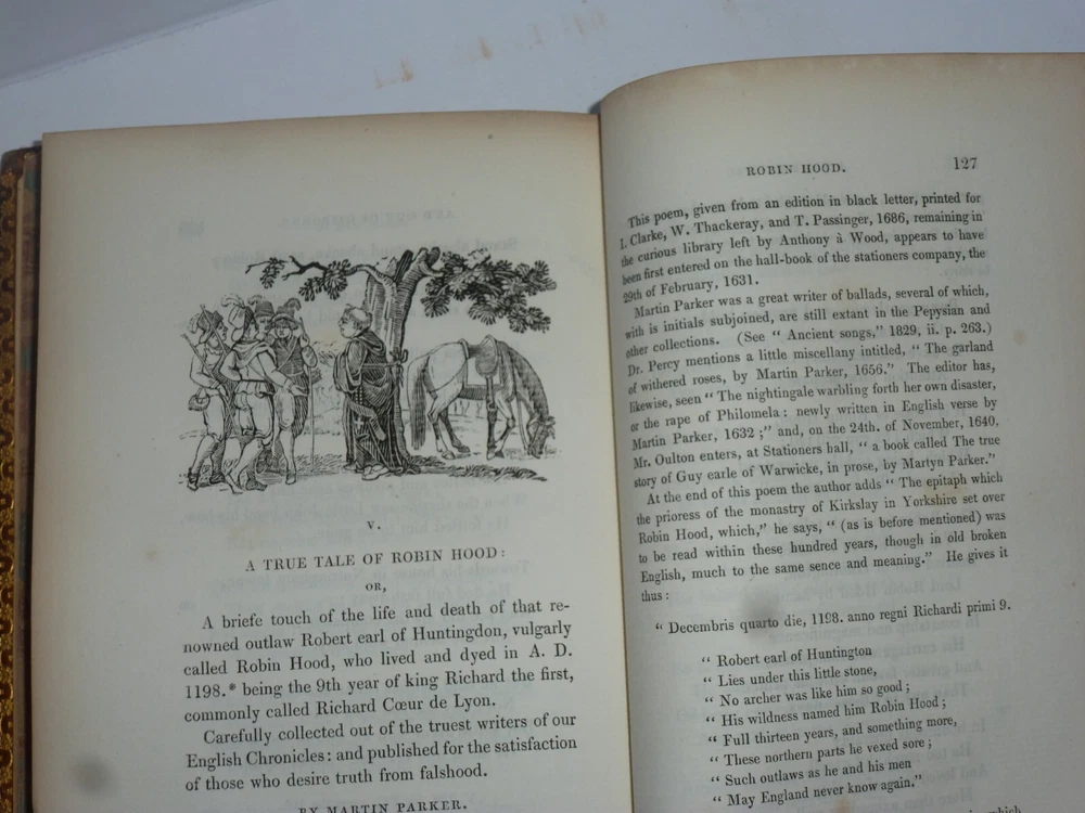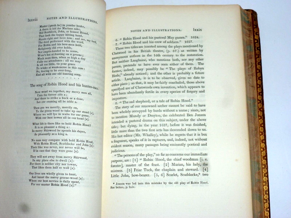Up for auction is a local estate find Joseph Ritson Robin Hood Collection of All the Ancient Poems Songs 1832 Vol. 1 ONLY! Please read the description below and take a good look at the pics as what you see is what you get! The book is sold as described as is in the condition described with full knowledge of the damage and imperfections. The book is sold as is and with no returns. Author: Joseph Ritson, Esq. Title: Robin Hood: A Collection of All the Ancient Poems, Songs, and Ballads, Now Extant Relative to That Celebrated English Outlaw to Which Are Prefixed Historical Anecdotes of His Life (2 Vols.) Publication: London: William Pickering, 1832. Description: Ex. Library. Full calf. First published in 1795, this is the 1832 stated 2nd edition (and the 1st Pickering edition) of the "first scholarly collection of Robin Hood ballads". Complete in 2 volumes. Bound in a period --if not the publisher's-- full calf by the Jenkins Bindery, with 5 raised bands (and intricate gilt-tooling within) and leather title and author labels along the spine. Obvious damage and separation to the spines; Library sticked attached to the spine. corners bumped; tape on spinr - front and back boards. Title page stamped. Matching marbled endsheets. Poor boards; Inside pages unmarked and clean- nice condition for their age. TERMS OF SALE 100% SATISFACTION GUARANTEED! PLEASE, ALWAYS CONTACT US WITH ANY PROBLEMS BEFORE LEAVING FEEDBACK! Every effort is made to describe all our items as honestly and accurately as possible! Our items are previously owned unless stated otherwise. We ship from a smoke free environment. We offer combined shipping to save you money. Please wait for an invoice before sending payment for multiple purchases! We are happy to answer any questions regarding our items, and additional photos are available upon request. We always leave very positive feedback in the Feedback Forum for a smooth transaction and would appreciate you doing the same.