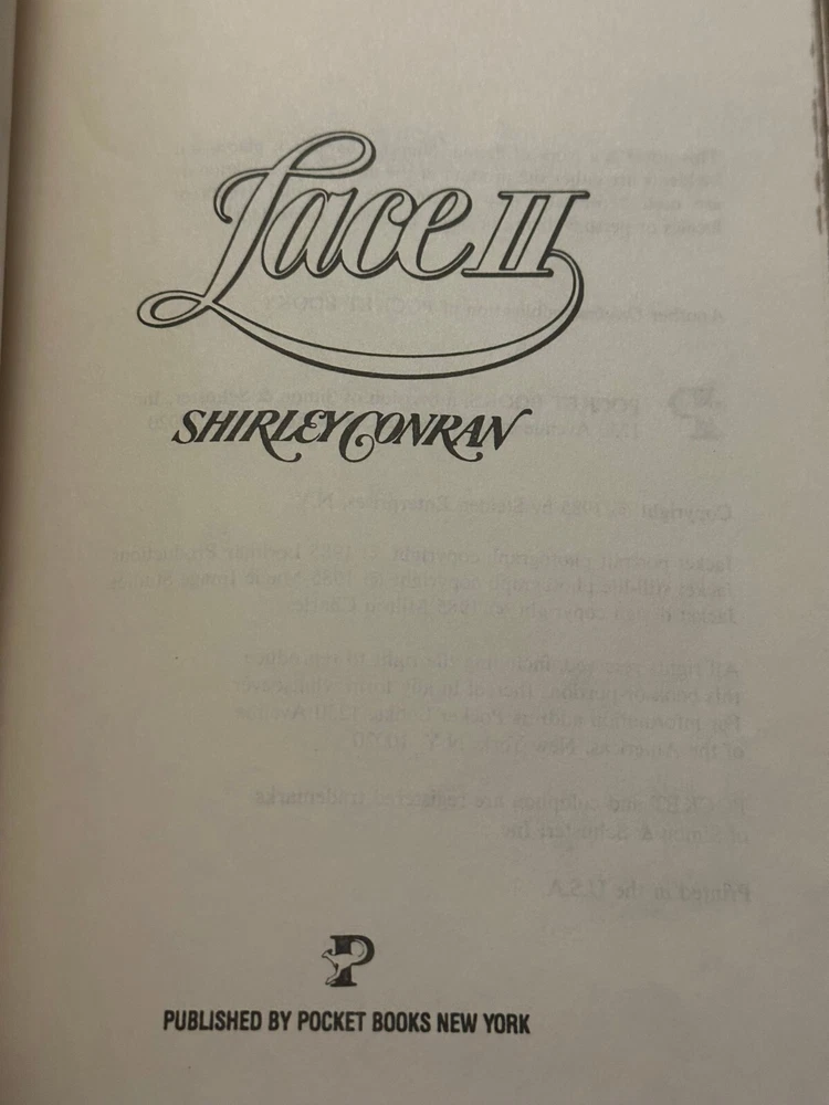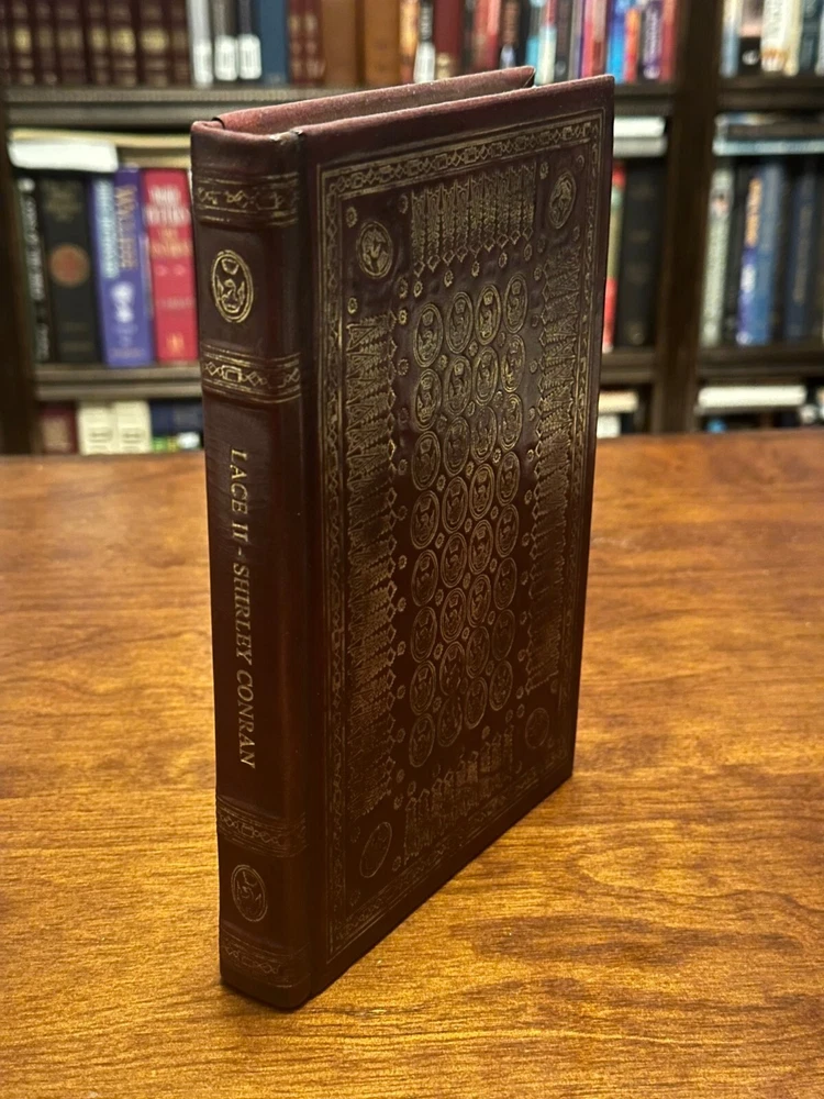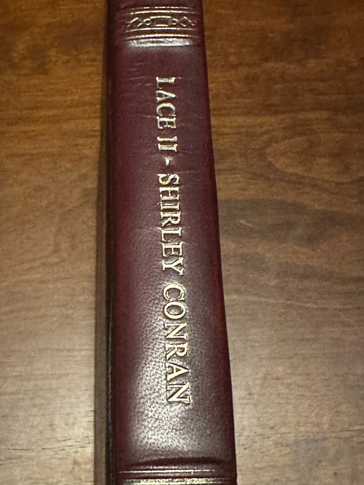 LACE II by: Shirley Conran VERY GOOD CONDITION - HARDCOVER (GENUINE LEATHER BOUND) Item Pictured is the One You WILL Receive! No Markings or folds on pages (except personal library embossment) About the Book: Title: Lace II Author: Shirley Conran Publisher: Pocket Books Special At tributes : Leather Bound Format: Hardcover - No Dust Jacket - Genuine Leather Bound Copyright: 1985 Pages: 277 ISBN: not available Dimensions: 5.75 x 8.50 x 1.00 inches