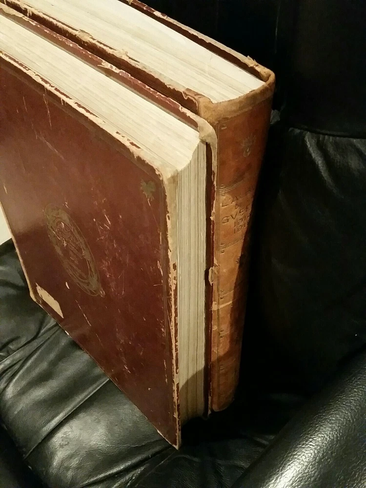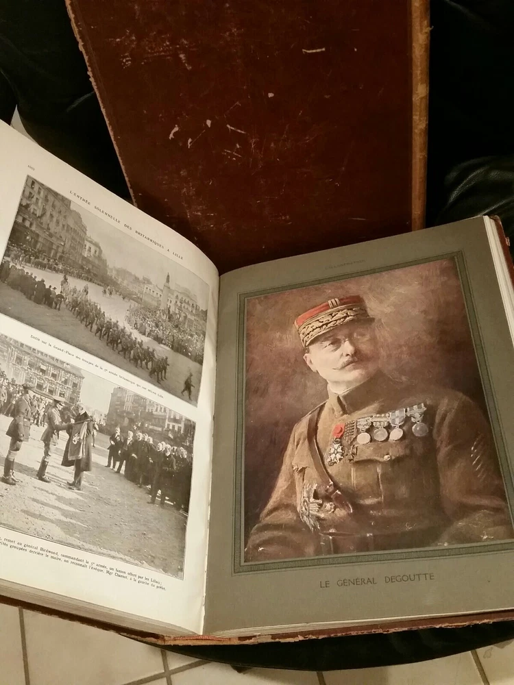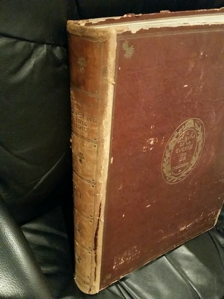 L'ALBUM DE LA GUERRE 1914-1919. Illustrated - 1922 / Leather Bound volume 1 and 2. Poor condition bad covers torn pages water stained pages missing pages loose pages...