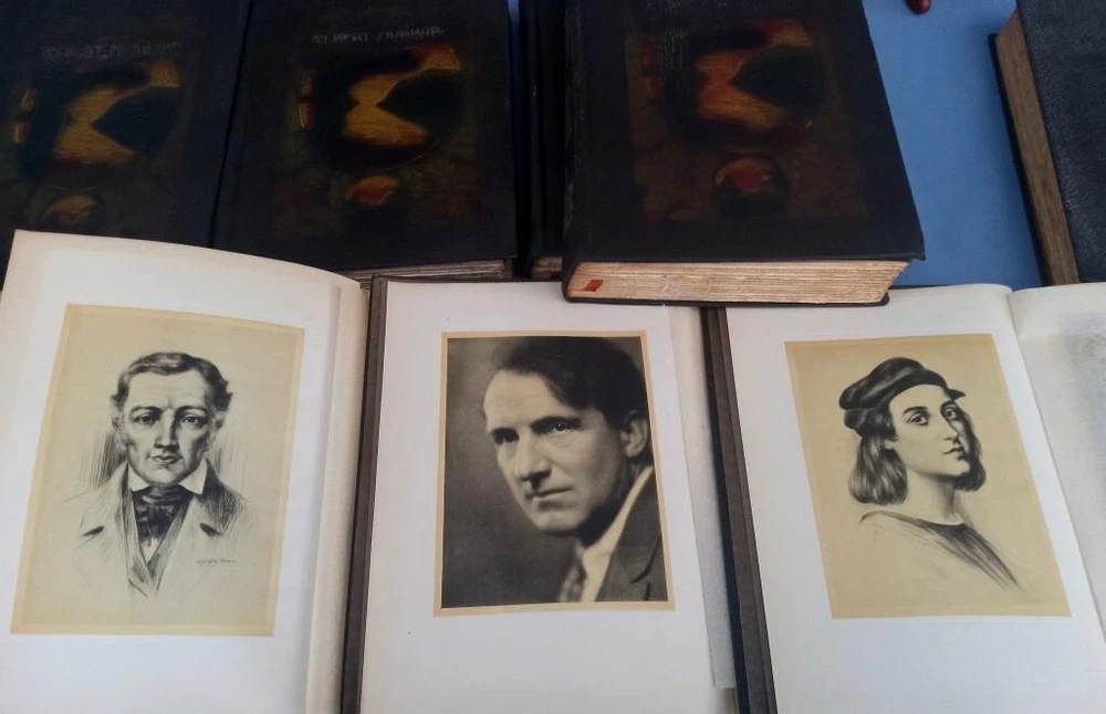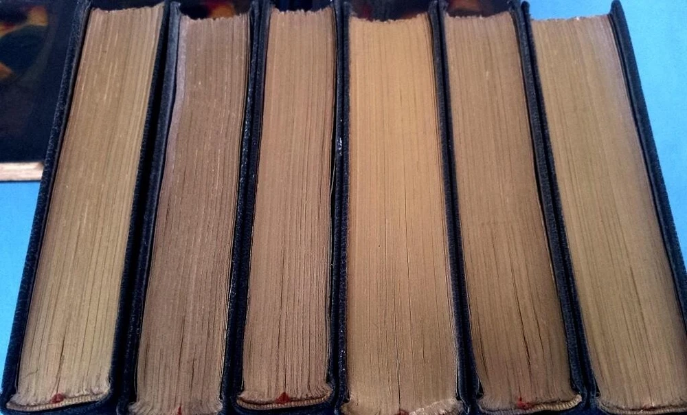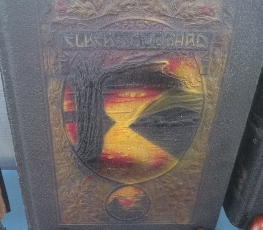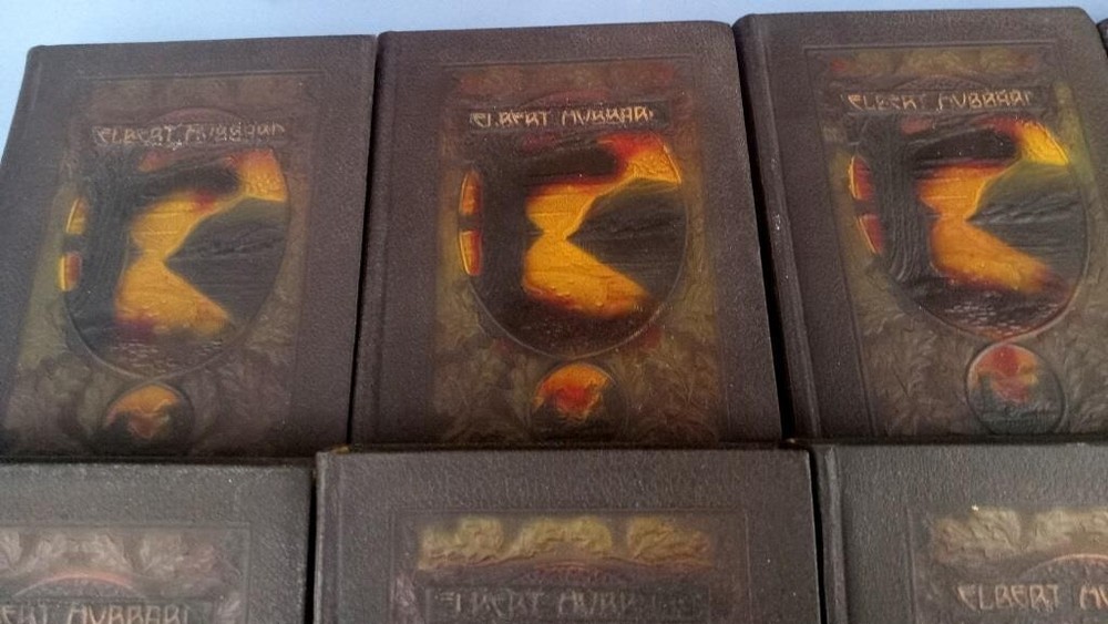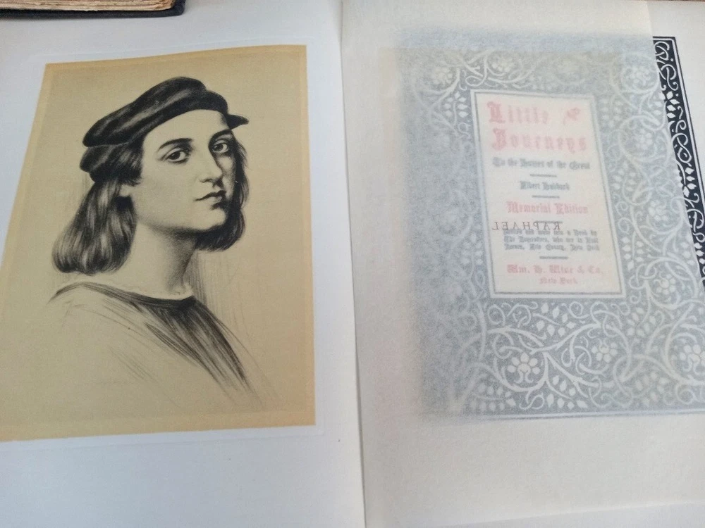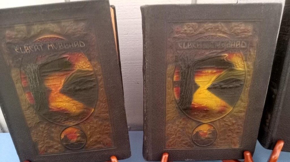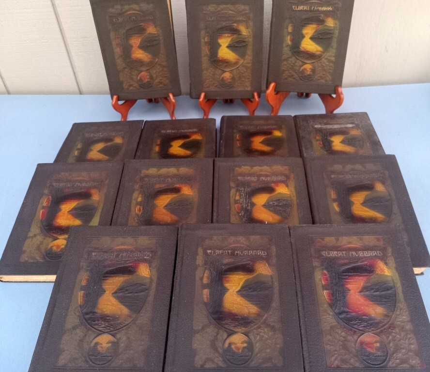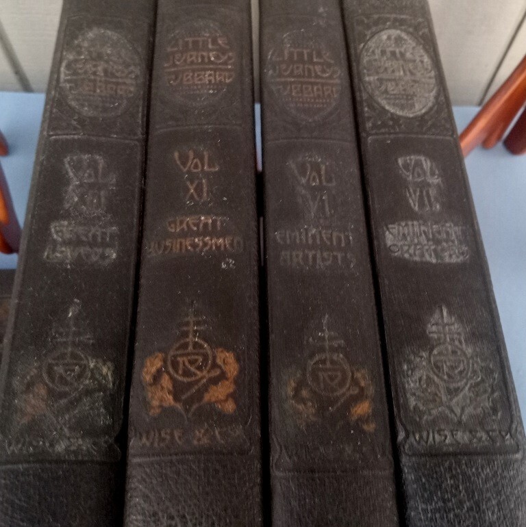 A Full Set Of Famed Roycrofter Publication called Little Journeys Bright Set In Engraved Leather Covers Tooled With Illustrated Covers Frontis in B&W Portrait with Tissue Overlay Other B&W Inc in Text Bright Clean Pages boos No writing or tears Top Foredge in Gold Side Foredge Rough Cut Page edges. Engravened Lettering To spines With Titles and Vol. Number. FULL Set Of Little Journeys Collectors editions with the Engraved Leather Bindings..All Bubble Wrapped with Care USPS Media Tracking is On Ebay~ Thanks~