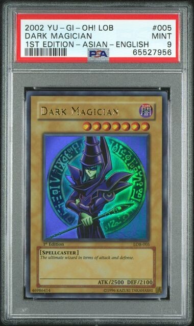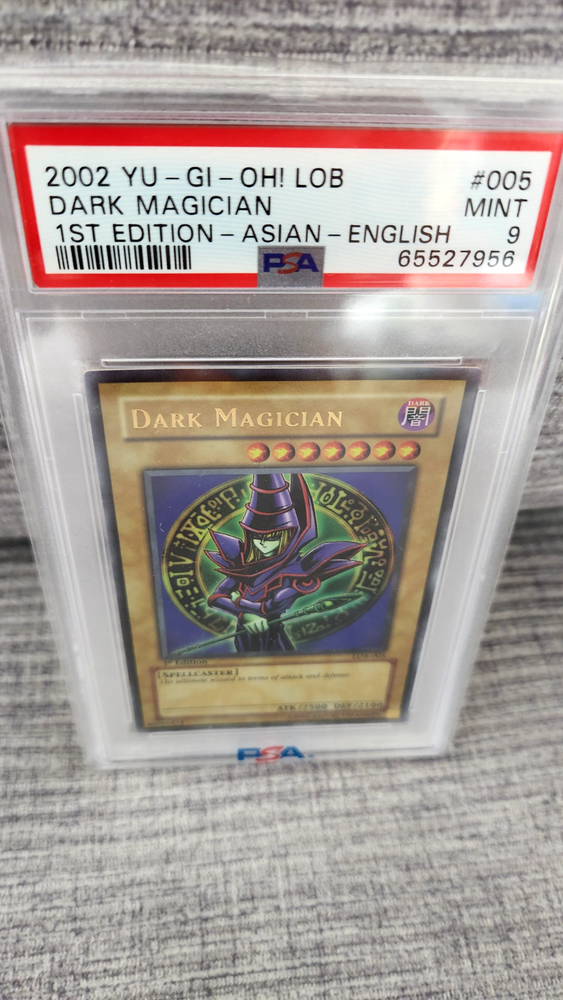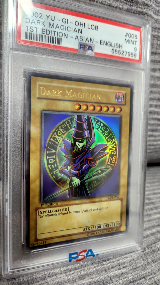 This is an absolute gem for Yu-Gi-Oh! fans—the Dark Magician in pristine PSA 9 condition looks stunning with its ultra-rare foil finish. As a 1st edition from 2002, it’s a rare find that holds serious collector’s value. The artwork pops, and the grading ensures top-tier quality. A true centerpiece for any deck or display!