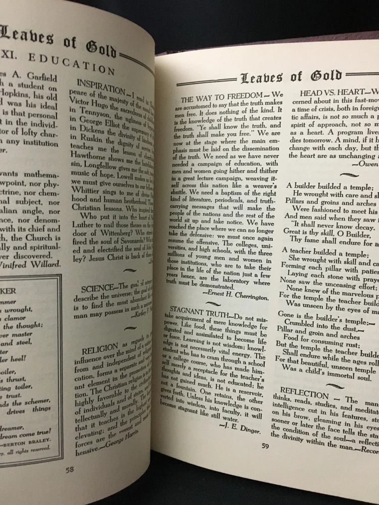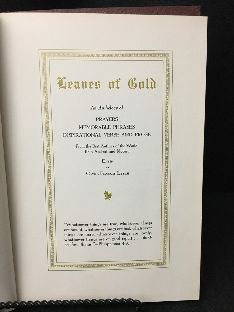Labes of Gold ~ Edited by Clyde Francis Lytle ~ 1959 ~ Hard Back ~ Leather Bound ***Please examine the photographs closely as these are part of the description. * ** Feel free to email me with questions or comments. I will do my best to answer or send additional pictures if needed.