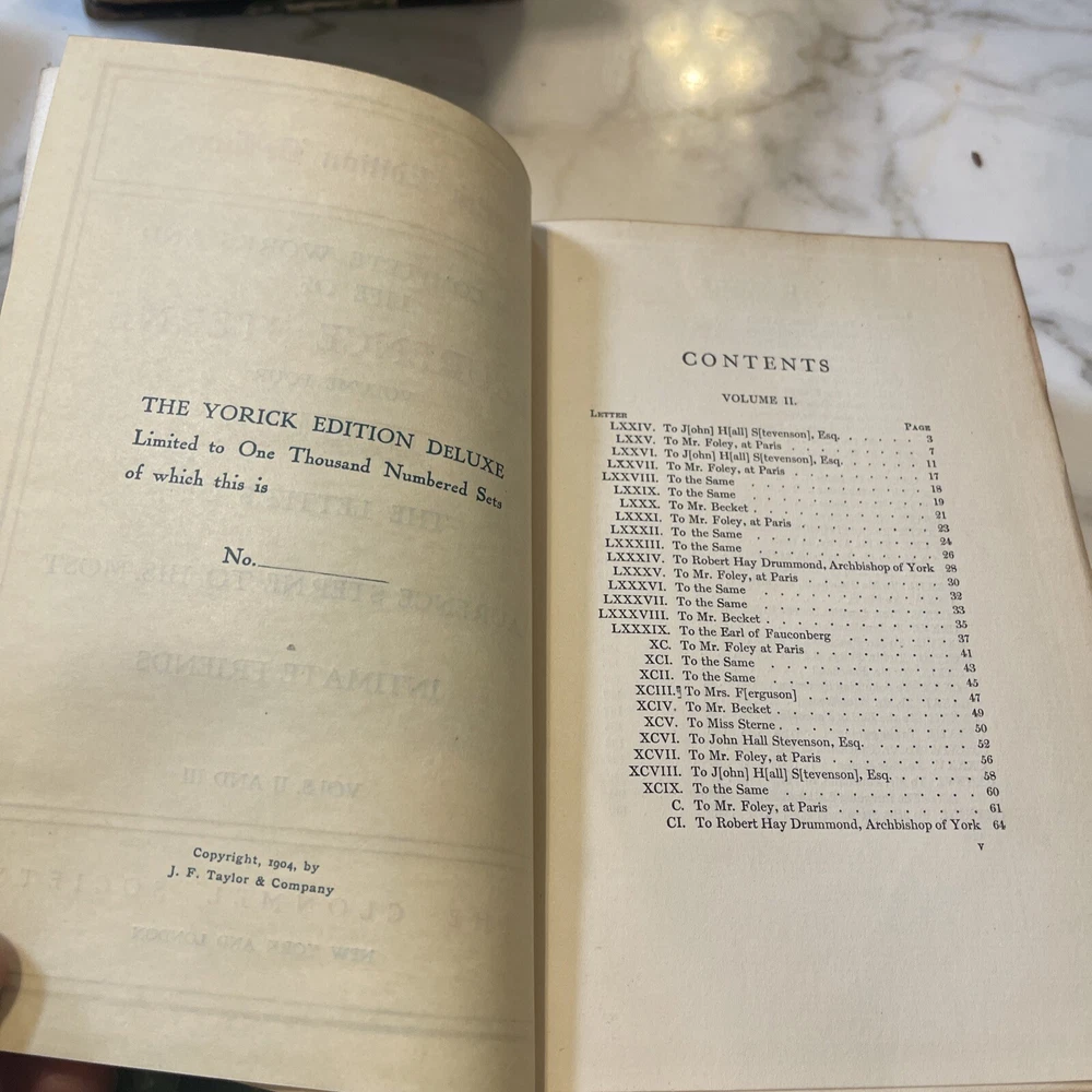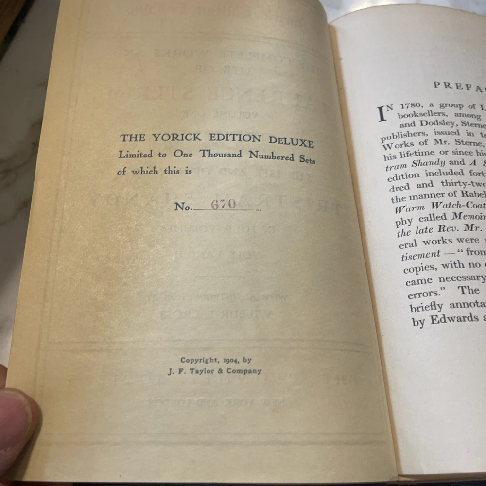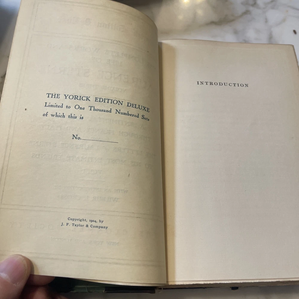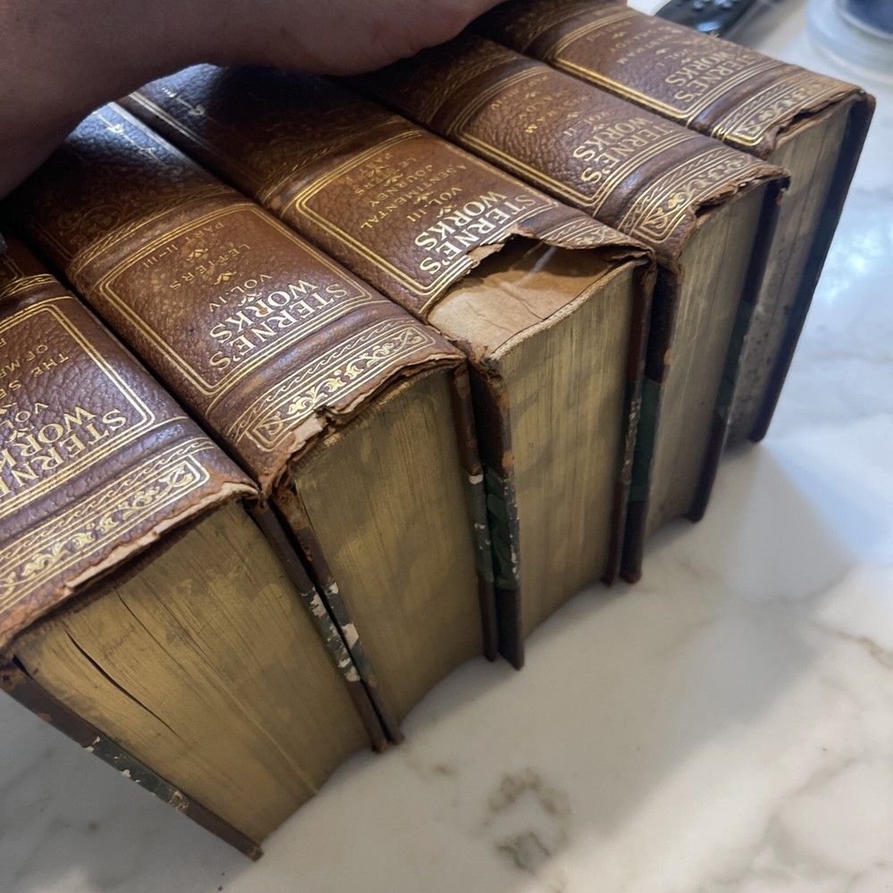 Laurence Sterne Works 1904 lovely 5 vol. leather Deluxe ed. set Antique Set 670. Appears to be limited edition Some writing. 120 years old. Beautiful books Please see scans for condition Shipped via media mail in US only