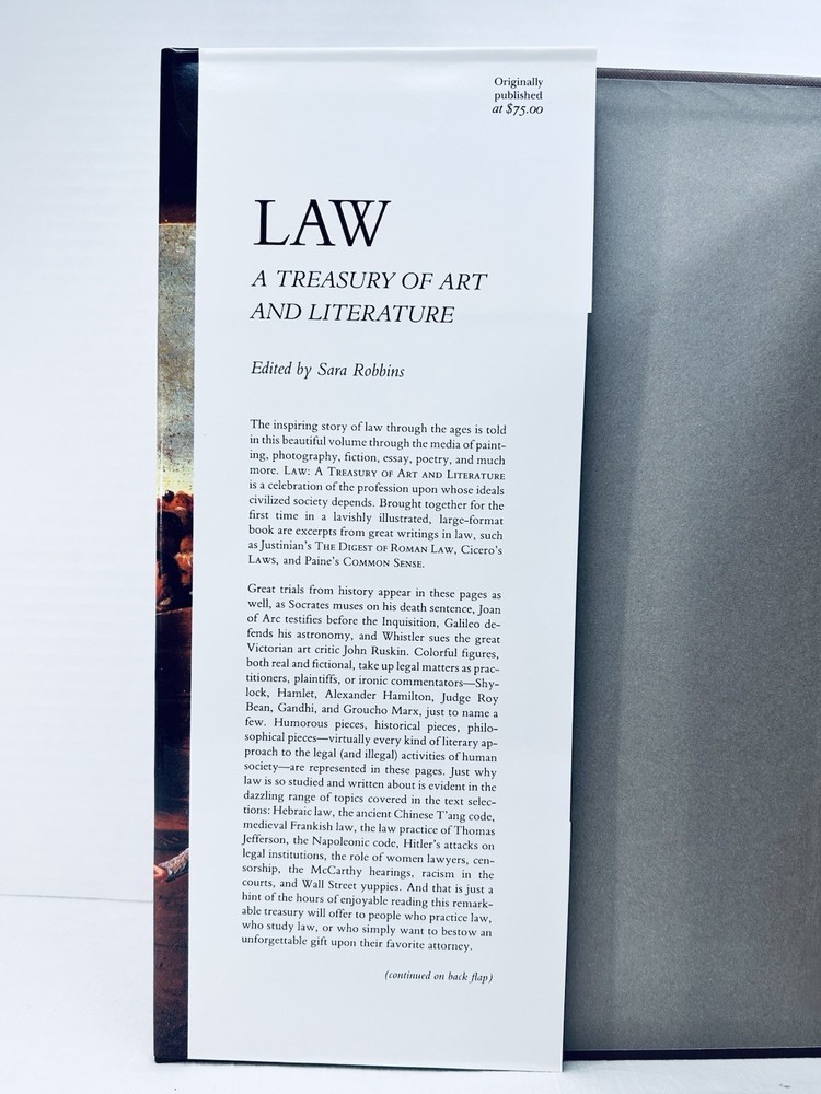 "Law: A Treasury of Art and Literature" by Sara Robbins Anthology published in 1990 by Hugh L. Levin Associates...