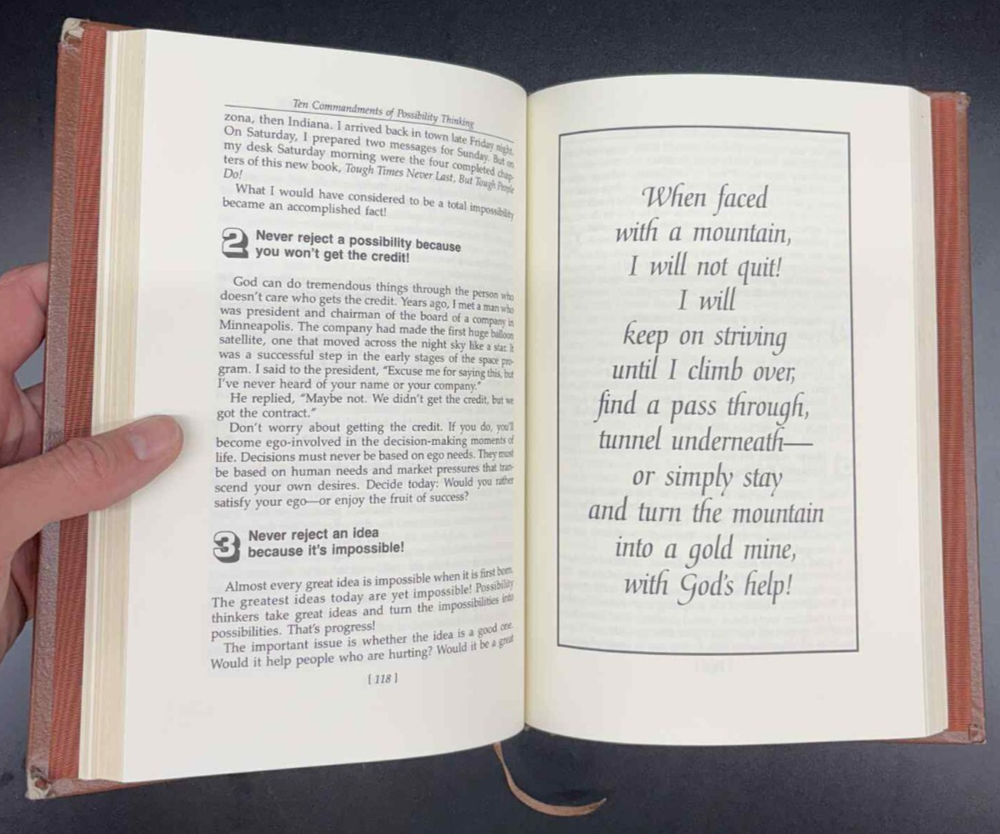 The "Leather Book 1983 Tough Times Never Last But Tough People Do" by Dr. Robert Schuller is a vintage, collectible edition published by Thomas Nelson Publishers in 1983. This nonfiction book, aimed at adults, explores themes of resilience and perseverance, making it a valuable resource for those seeking inspiration and guidance in navigating tough times. With a luxury leather-bound format, this edition offers a timeless message that is both practical and spiritually uplifting, making it a prized addition to any book collection.