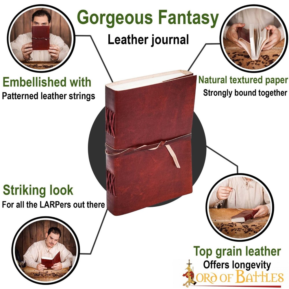 Lord of Battles Leather Journal Notebook | Medieval Diary Poetry Journal (7x5 inches) Handmade w/ 120 Sheets Of Natural Textured Paper Bound Leather String | Writter Journal - Brown ✔️ ★ PERFECT CHOICE ★ Looking for a journal to mark your stray thoughts in, but your taste only settles for the unique ones? This fantasy leather journal is what you should get. A fountain pen and this diary is all it takes for a rich journaling experience! ★ ✔️ ★ HANDMADE ★ This (7 X 5) inches leather journal not only looks unique but is so in every possible way! It has been handmade from robust 100% REAL TOP GRAIN LEATHER. The 100 NATURAL HANDMADE PAGES are bound firmly using sturdy fabric strings that make it a useful accessory to last for years! ★ ✔️ ★ TOP QUALITY MATERIAL ★ At Lord of Battles we are genuinely committed to our clients offering nothing but the best ★ Every item unique every item purely Handcrafted ★ Highest possible standards are maintained by using the best quality materials ★ Innovation and creativity are the hallmarks of our company yet we stay true to history ★ Every article is obtained keeping ethics in mind and conserving the environment ★ ✔️ ★ BE THE AUTHENTIC MEDIEVAL ★ Stand out at your epic cosplay event, at a wedding or a LARP ★ Outshine the rest, with our super quality products made out of authentic material and proudly relive history ★ We promise you will be the star of the medieval event ★ Feel the true Lord Of Battles, the most epic character, or simply a ruffian… with our products… You can be the character that the event requires ★ ✔️ ★ SATISFACTION GUARANTEED ★ We assure you of total satisfaction. Let us know if you have a complaint with your purchase, we will do whatever it takes to make it right ★ our business is your happiness ★ Be happy Buy happy ★ About Us: We are your specialist dealer for Reenactments, Middle Ages, movies and LARP. Our experience of more than 25 years in this sector makes us your expert provider. Become a knight, archer, assassin, any character within your imagination. Make your film incredible, become or remain the best production company possible using our products. We have the best quality in the market creating what you want, if we don’t have it. Steel armor, leather armor, chainmail, battle ready weapons and shields, horns, clothing, and accessories. In our catalogue you will find everything you need. We are Lord of Battles. Shipping: Most orders will ship out within 1-2 business days of ordering. Your order will be shipped with Standard Service. Once shipped, orders are generally received within 7 business days. We do not ship on Saturdays, Sundays, or holidays. While we will do all we can to ensure your order is delivered on time. Mythrojan cannot be held responsible for conditions beyond our control such as severe weather, service interruptions, etc. Return Policy: Returns Policy is 30 Days Free Returns based on the original purchase date.