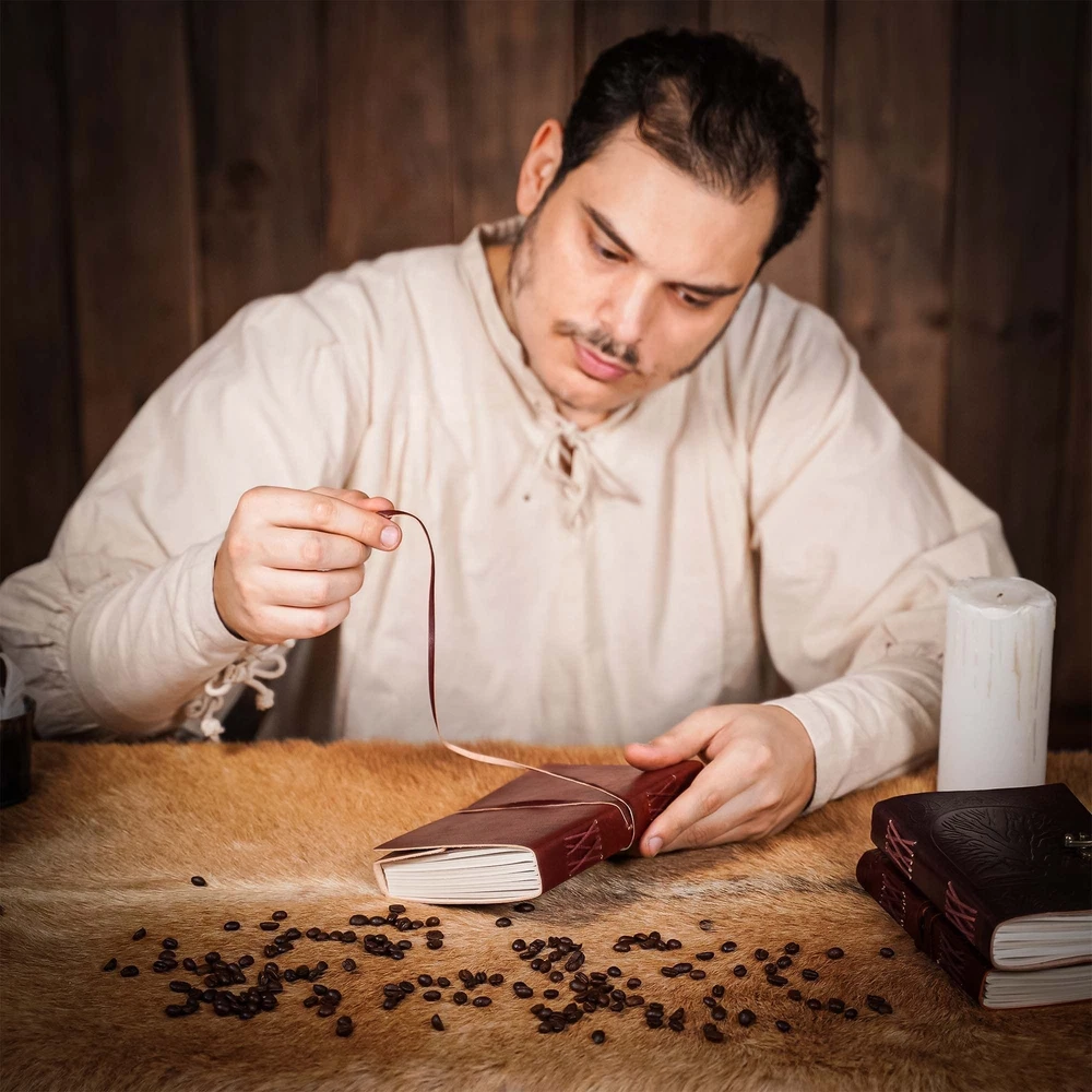 This handmade leather journal is absolutely stunning—the rich brown leather and medieval design make it feel like a treasure. The textured paper is perfect for fountain pens, and the sturdy binding ensures it’ll last. Ideal for writers, poets, or anyone who loves a touch of fantasy in their everyday notes. A must-have for unique journaling!