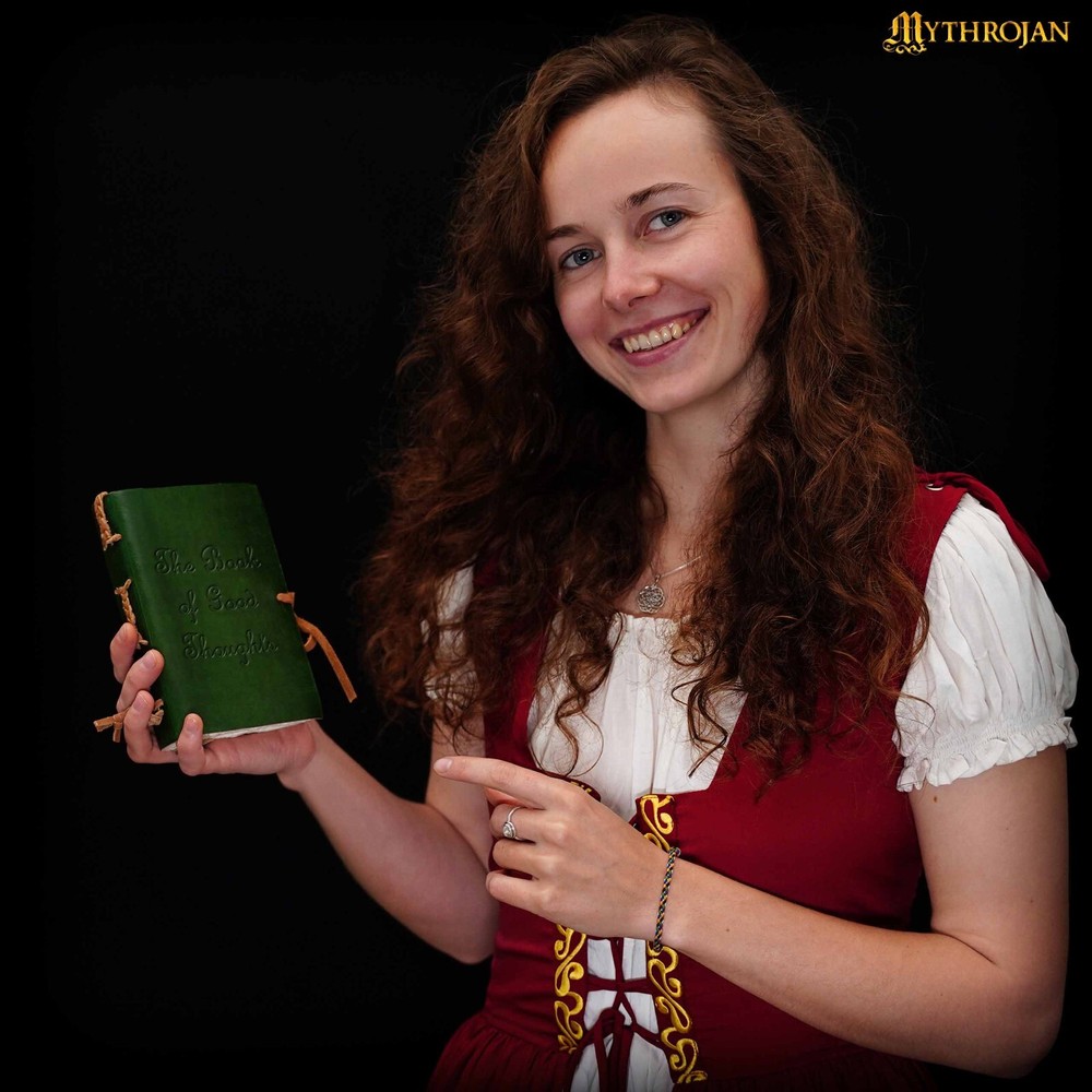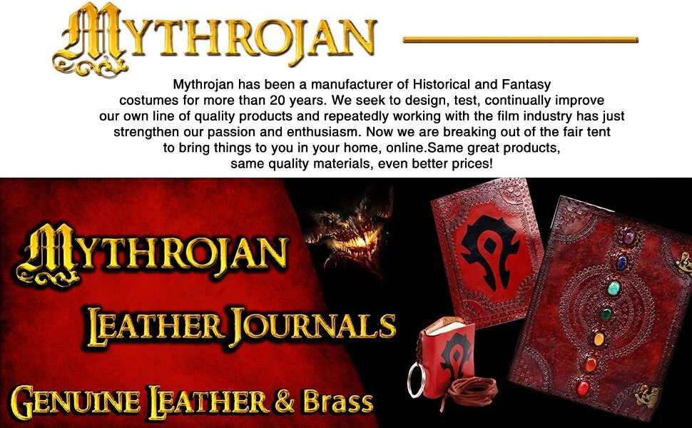 The Book of Good Thoughts Leather Notebook Writing Journal Diary Art Sketchbook ⭐ IDEAL SIZE ♦ ♦ 4" X 6" Perfect size for pocket, pouch, or purse ♦♦ Its compact size makes it easy to carry or slip into a bag, but big enough to express all your creativity! ⭐ 100% HANDCRAFTED FROM THE BEST LEATHER: Reminiscent of medieval manuscripts, our leather journals are crafted from only the finest, supple split leather and are richly embossed to give them their ELEGANT MEDIEVAL LOOK. All our leather journals are built to last and 100% handmade to ensure both an authentic look and unique vintage decorative appeal. ♦♦ ⭐ CAPTURE AND SHARE YOUR IDEAS BEFORE THEY FLY AWAY : Our beautiful leather notebook journal can be used as an appointment book, daily diary, travel journal, notebook, or sketchbook for yourself, family, and friends. Or they can easily become the key accessory of your next costume or cosplay! ⭐ Natural and Recycled Materials ♦♦ Compatible with any ink ♦♦ Acid-free, chemical-free, archival quality ♦♦ Handmade recycled cotton blank paper compatible with multiple mediums ♦♦ Unique high-quality embossing. ⭐ LIFETIME GUARANTEE. Providing you with high-quality products is what we do, and your FULL SATISFACTION and happiness are of utmost importance to us! All warranty issues are handled directly by Mythrojan. If you receive something that is not up to your expectations, CONTACT US, and we will work with you to resolve the problem. If, over time, a Mythrojan product no longer lives up to your expectations, CONTACT US, and we will work with you to assure SATISFACTION! About Us: Mythrojan has been a manufacturer of historical and fantasy costumes for more than 20 years. We seek to design, test, and continually improve our own line of quality products. Repeatedly working with the film industry has just strengthened our passion and enthusiasm. Now we are breaking out of the fair tent to bring things to you in your home, online. Same great products, same quality materials, even better prices! Shipping: Most orders will ship out within 1-2 business days of ordering. Your order will be shipped with Standard Service. Once shipped, orders are generally received within 7 business days. We do not ship on Saturdays, Sundays, or holidays. While we will do all we can to ensure your order is delivered on time. Mythrojan cannot be held responsible for conditions beyond our control such as severe weather, service interruptions, etc. Return Policy: Returns Policy is 30 Days of Free Returns based on the original purchase date.