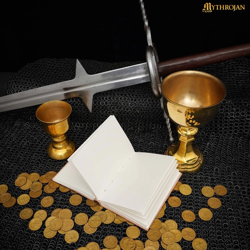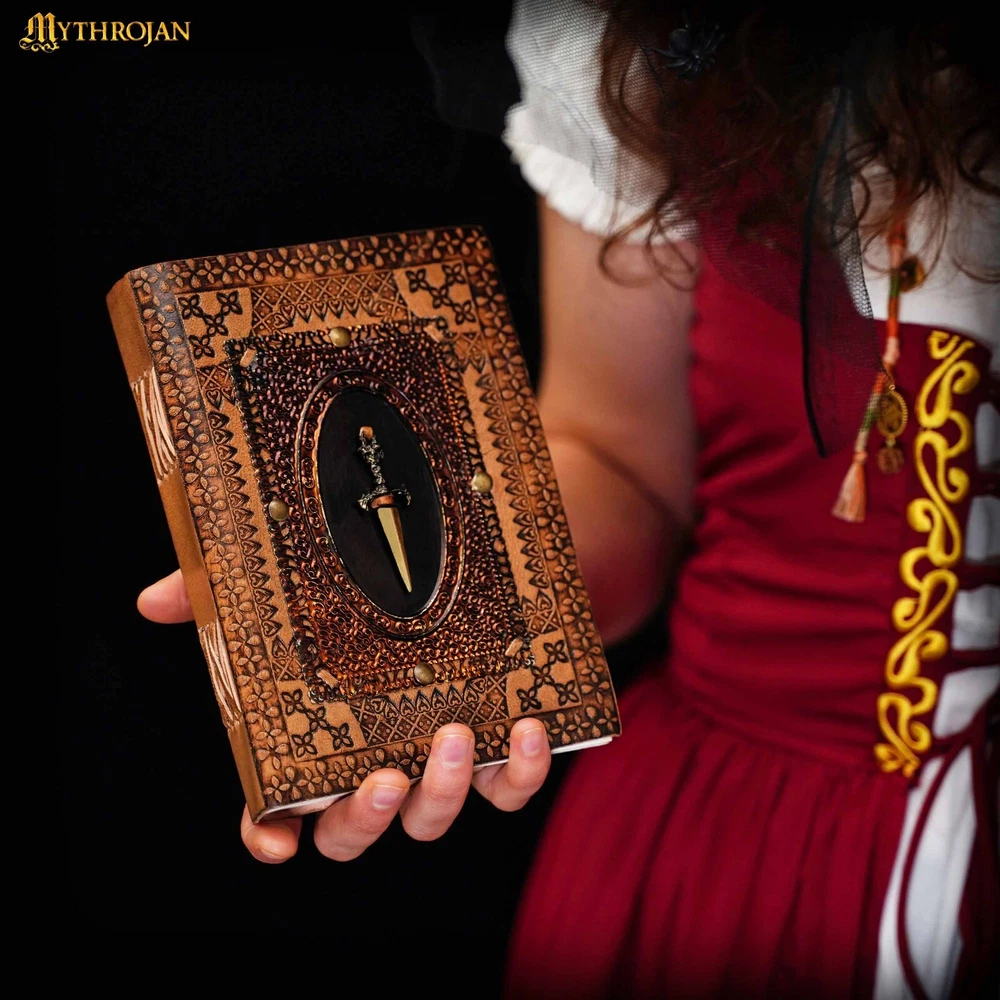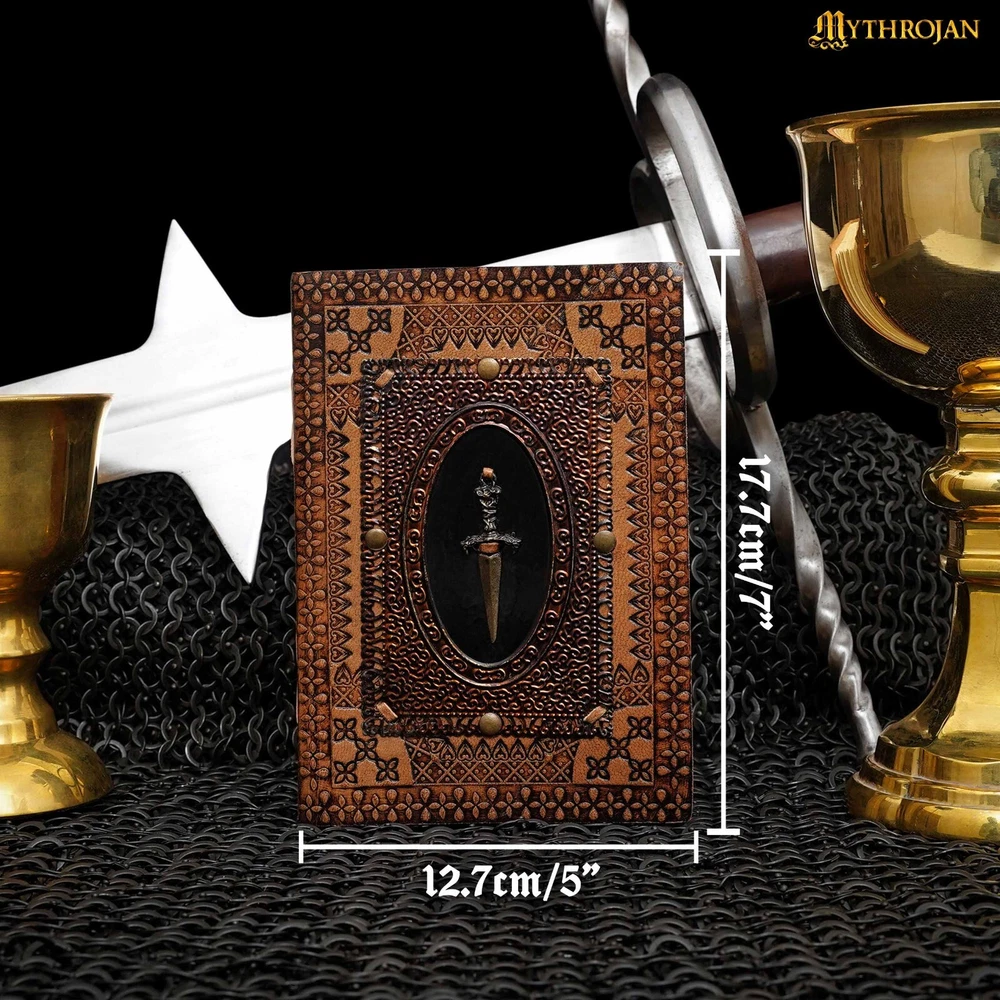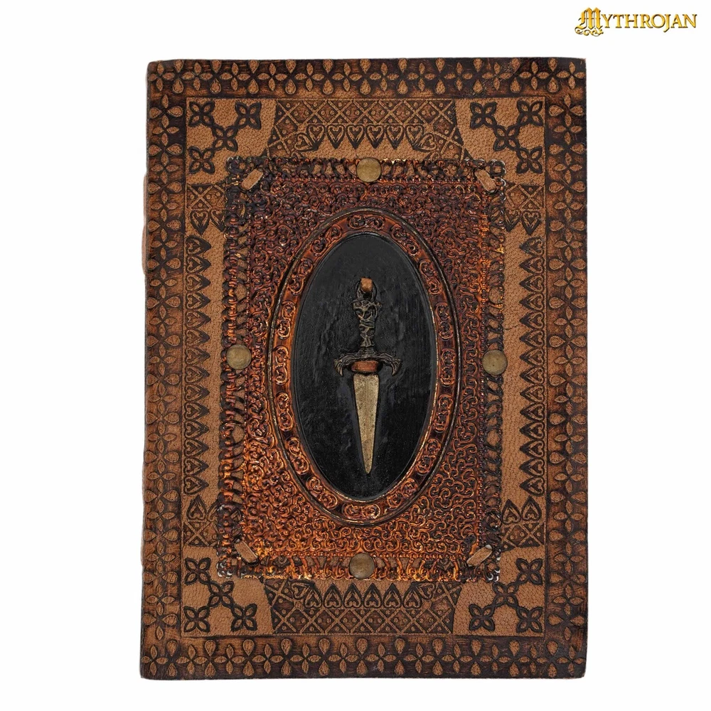 Leather Bound Journal Notebook Diary Retro Sketchbook with Embossed Sword Pendant ⭐ IDEAL SIZE ♦♦ 7" x 5" Perfect Size for Pocket, Pouch, Or Purse ♦♦ Its compact size makes it easy to carry around or slip into a bag but big enough to express all your creativity! ⭐ 100% HANDCRAFTED FROM THE BEST LEATHER: Reminiscent of medieval manuscripts our leather journals are only crafted from the finest, supple split leather and richly embossed to give them their ELEGANT MEDIEVAL LOOK: every single of our leather journals is built-to-last and 100% handmade to ensure both authentic look and unique vintage decorative appeal ♦♦ ⭐ CAPTURE AND SHARE YOUR IDEA BEFORE THEY FLY AWAY: our beautiful leather notebook journal can be used as an appointment book, daily diary, travel journal/notebook/sketchbook for yourself, families, and friends… Or easily become the key accessory in your next costume or cosplay! ⭐ Natural And Recycled Materials ♦♦ Compatible with Any Kind Of Ink. ♦♦ Acid-free, Chemical-free, Archival Quality ♦♦ Handmade Recycled Cotton Blank Paper Compatible With Multiple Mediums ♦♦ Unique high-quality embossing. ⭐ LIFETIME GUARANTEE ♦♦ Providing you with high-quality products is what we do, and your FULL SATISFACTION and happiness are of utmost importance to us! All warranty issues are handled directly. If you receive something that is not up to your expectations, CONTACT US, and we will work with you to resolve the problem. If, over time, a product no longer lives up to your expectations, CONTACT US, and we will work with you to assure SATISFACTION! About Us: Mythrojan has been a manufacturer of historical and fantasy costumes for more than 20 years. We seek to design, test, and continually improve our own line of quality products. Repeatedly working with the film industry has just strengthened our passion and enthusiasm. Now we are breaking out of the fair tent to bring things to you in your home, online. Same great products, same quality materials, even better prices! Shipping: Most orders will ship out within 1-2 business days of ordering. Your order will be shipped with Standard Service. Once shipped, orders are generally received within 7 business days. We do not ship on Saturdays, Sundays, or holidays. While we will do all we can to ensure your order is delivered on time. Mythrojan cannot be held responsible for conditions beyond our control such as severe weather, service interruptions, etc. Return Policy: Returns Policy is 30 Days of Free Returns based on the original purchase date.